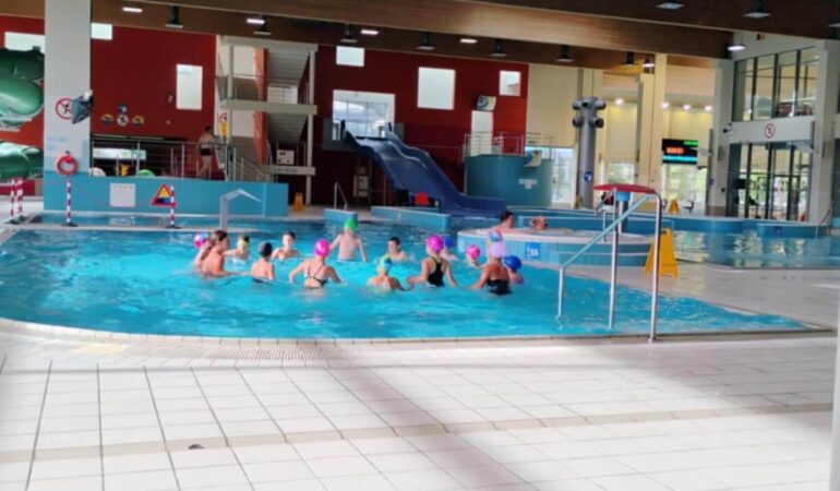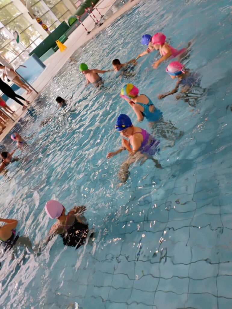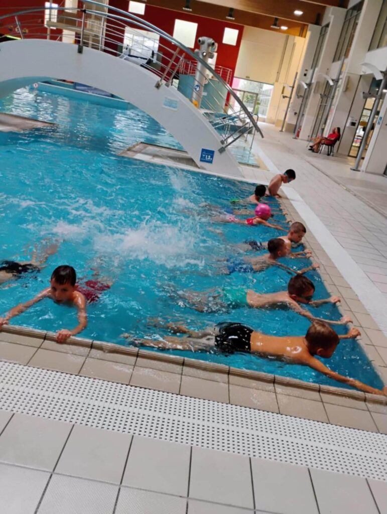Zajęcia mają na celu nie tylko naukę pływania, ale także oswojenie z wodą, kształtowanie prawidłowych nawyków bezpieczeństwa oraz budowanie pewności siebie w środowisku wodnym. Już pierwsze spotkanie przyniosło mnóstwo uśmiechu i pozytywnych emocji — a niektórzy uczniowie poczuli się jak ryby w wodzie ! Brawo dla wszystkich uczestników za odwagę i zaangażowanie.