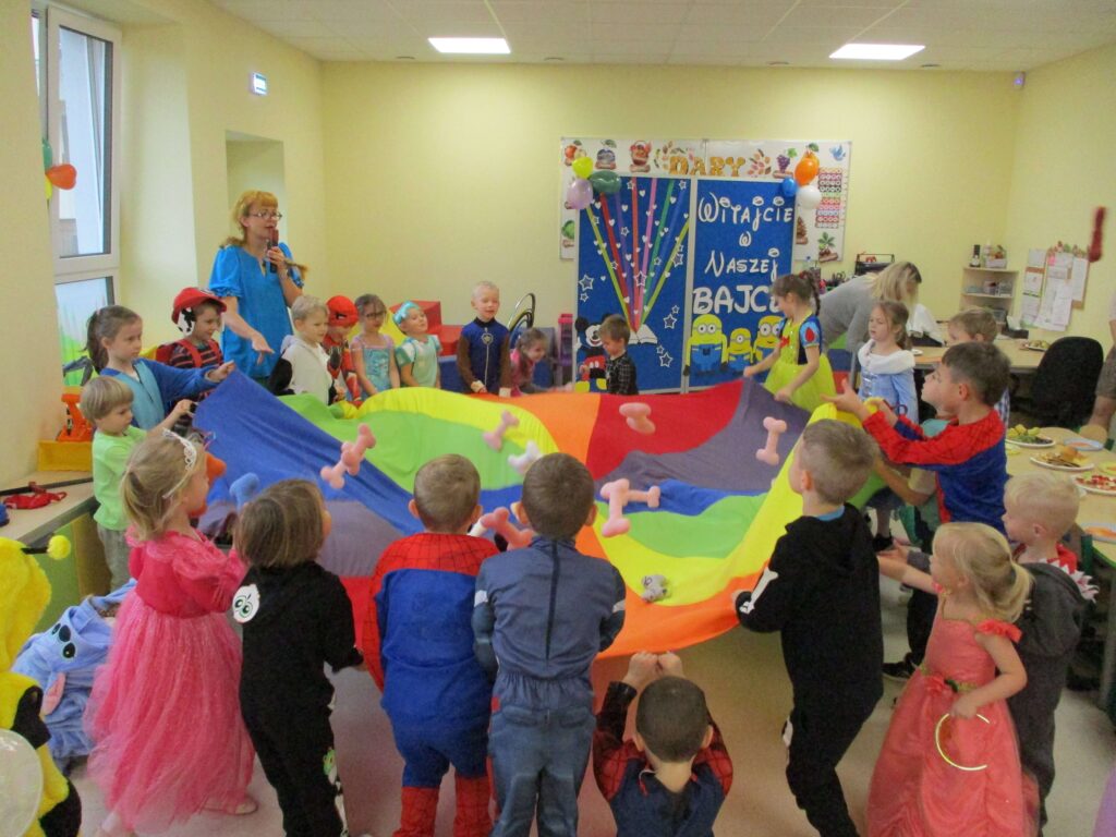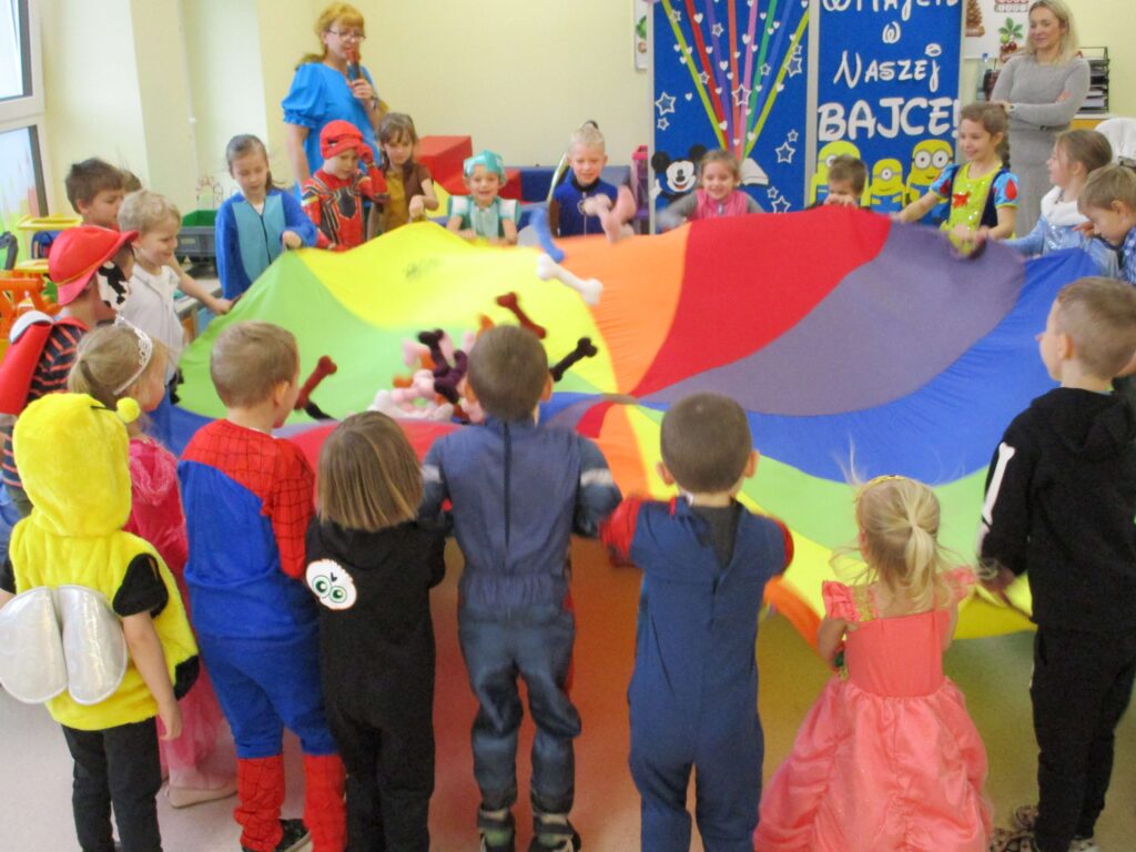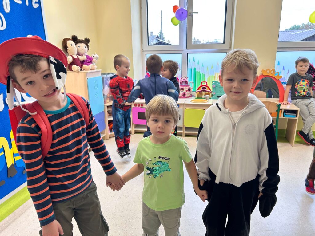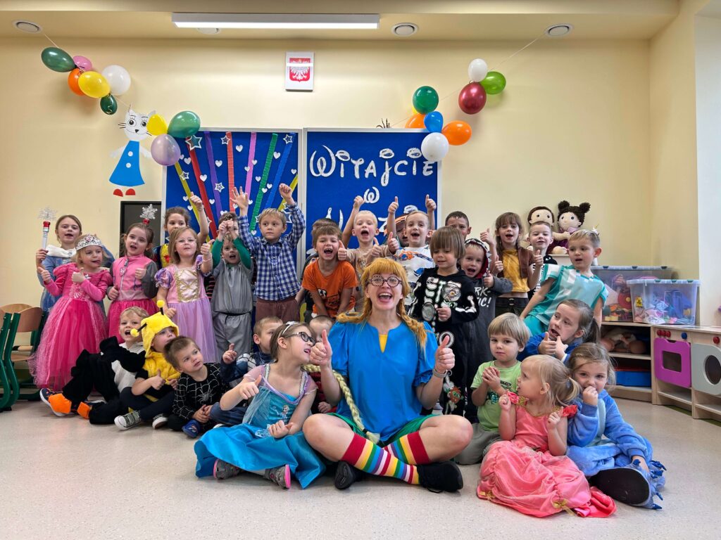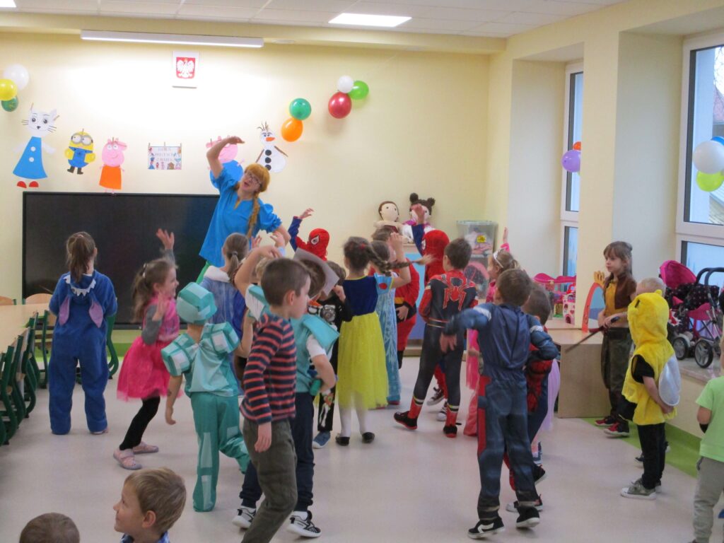 Co to był za dzień! W naszym przedszkolu odbył się Bal Postaci z Bajek, w którym udział wzięły dzieci z Punktu oraz Oddziału Przedszkolnego. Sala wypełniła się kolorami, muzyką i uśmiechami – wszędzie można było spotkać księżniczki, superbohaterów, wróżki, zwierzątka i wiele innych bajkowych postaci! Do wspólnej zabawy zaprosiła nas Pippi Pończoszanka, która roztańczyła wszystkich i wprowadziła mnóstwo pozytywnej energii. Dzieci z dumą prezentowały swoje przepiękne stroje i świetnie bawiły się podczas tańców, konkursów i wspólnych zabaw. Ten dzień na długo pozostanie w naszej pamięci!