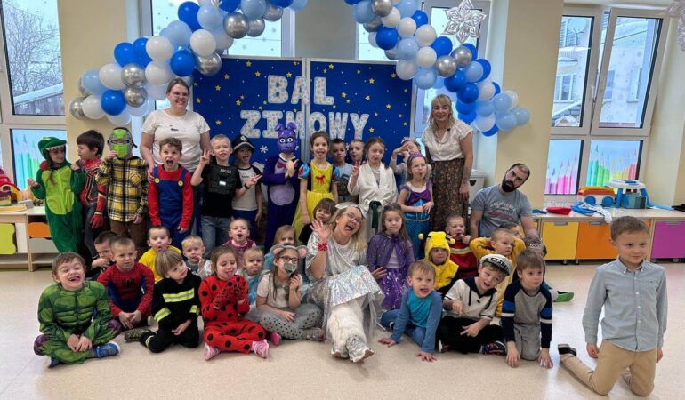 To był dzień pełen radości, uśmiechu i wspaniałej zabawy! Podczas Balu Zimowego nasze przedszkolaki zamieniły się w księżniczki, superbohaterów, zwierzątka, śnieżynki i wiele innych bajkowych postaci. Ilość i różnorodność pięknych strojów zachwyciła wszystkich!Fantastyczną zabawę poprowadziła animatorka Anna Wolańska – Happy Children, która zadbała o moc atrakcji i niezapomniane emocje. Dzieci brały udział w ciekawych zabawach muzycznych i ruchowych.Nie zabrakło również magicznych chwil z bańkami mydlanymi, które wywołały prawdziwy zachwyt wśród najmłodszych!