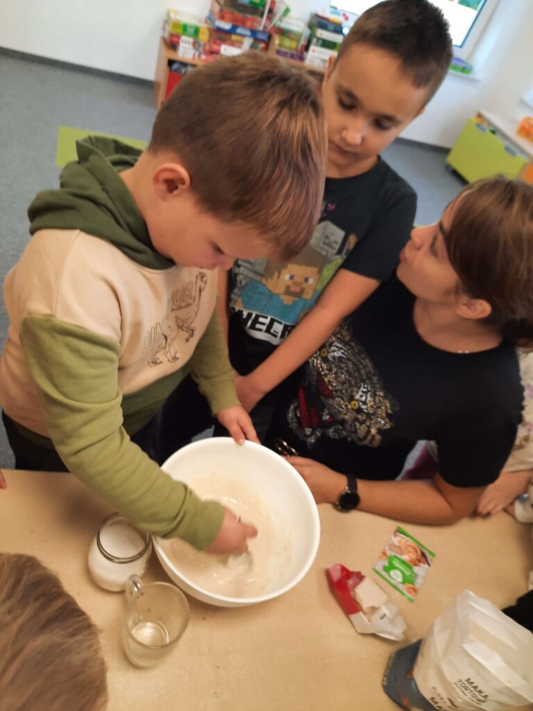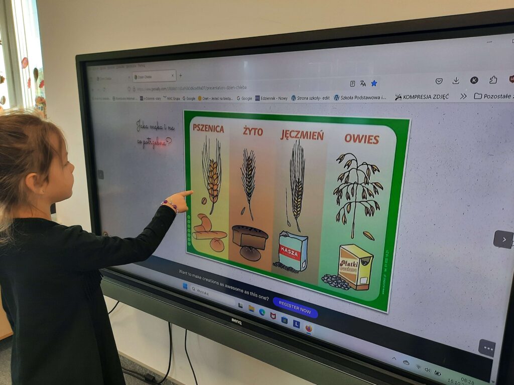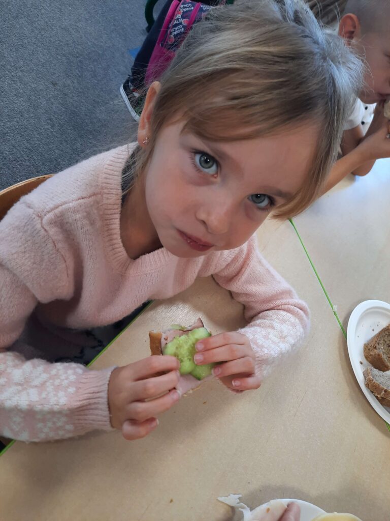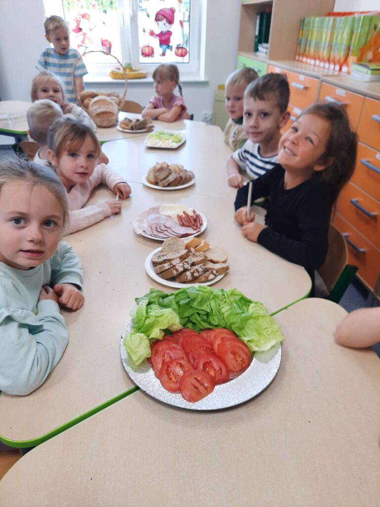 16 października w Oddziale Przedszkolnym obchodziliśmy Dzień Chleba. Przedszkolaki wysłuchały opowiadania pt,, Od ziarenka do bochenka” następnie obejrzały prezentację o różnych rodzajach pieczywa. Wspólnie z Panią mieszały składniki na chleb i obserwowały jak rośnie ciasto. Przy tej okazji dzieci samodzielnie zrobiły kanapki oraz brały udział w zabawnych aktywnościach związanych z tym tematem.