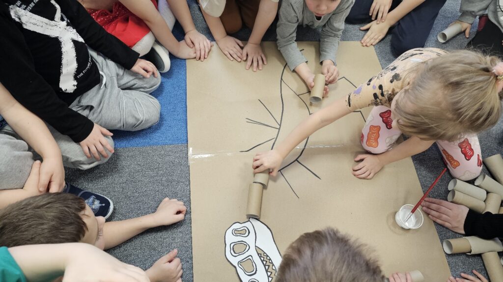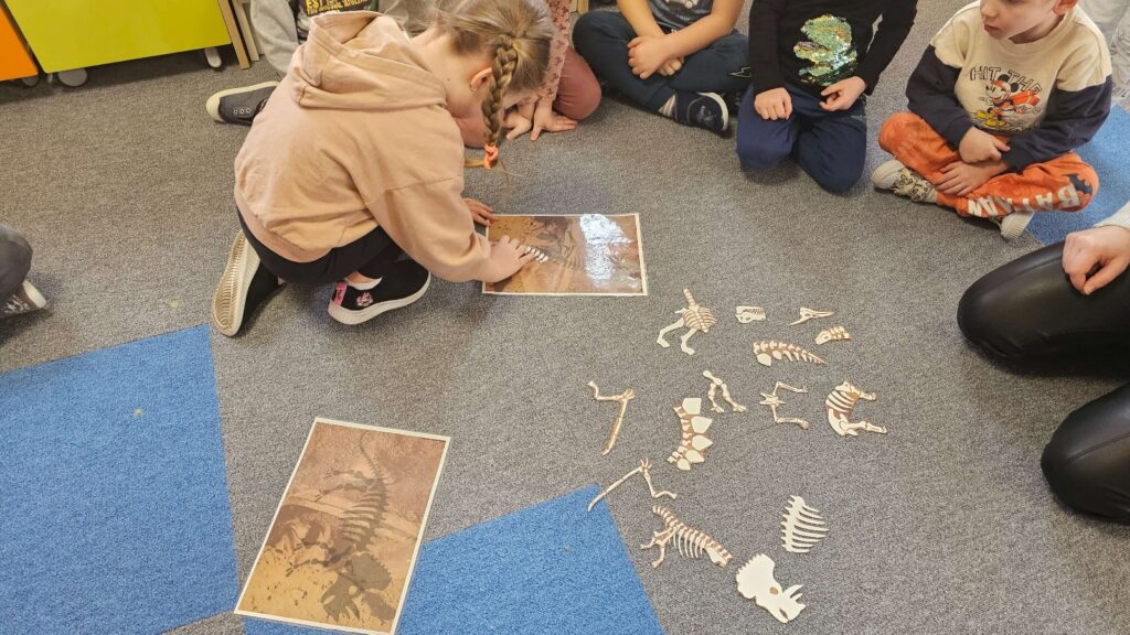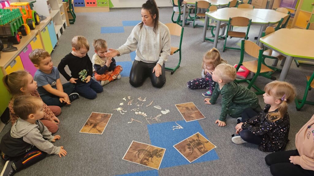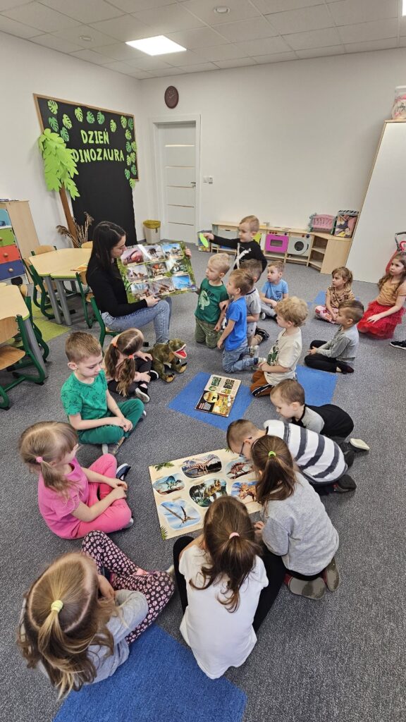 Dinozaury to stworzenia, które od dawna niezwykle fascynują szczególnie najmłodszych. Nie tylko zaskakują swoim wyglądem i wielkością, ale też kryją wiele tajemnic. W Punkcie Przedszkolnym mówiliśmy cały tydzień o dinozaurach zorganizowaliśmy zajęcia, które wprowadziły dzieci w prehistoryczny świat i przybliżyły im ich życie. Przedszkolaki dowiedziały się m.in. jak wyglądały, czym się żywiły oraz w jaki sposób prawdopodobnie wyginęły. Podczas zajęć dzieci chętnie porównywały wygląd dinozaurów, określały ich wielkość, segregowały je według określonej cechy. Nie zabrakło również ciekawych zabawach ruchowych oraz plastycznych związanych z tematyką zajęć. Miniony czas upłynął w miłej i odkrywczej atmosferze.