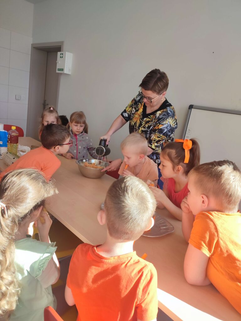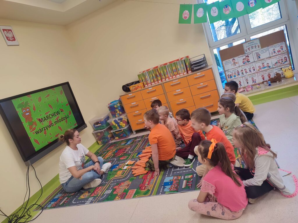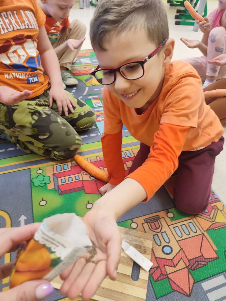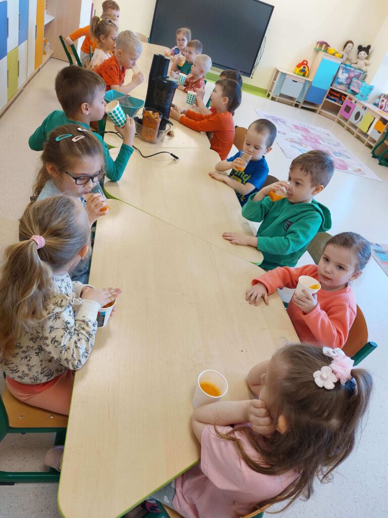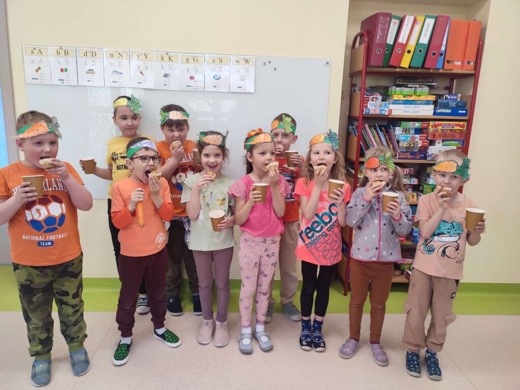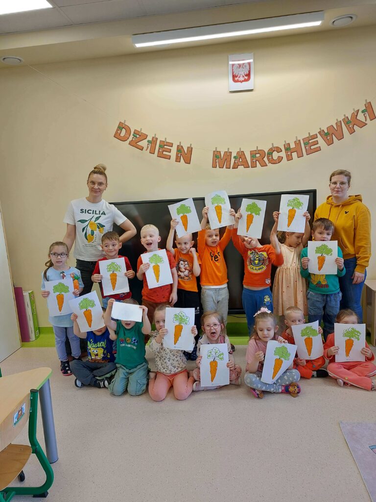 W Punkcie Przedszkolnym i Oddziale Przedszkolnym obchodziliśmy Dzień Marchewki – było bardzo wesoło i pomarańczowo! Robiliśmy pyszny, zdrowy sok z marchwi i marchewkowe muffinki, które wszystkim bardzo smakowały. Poznaliśmy też historię marchewki – dowiedzieliśmy się, skąd pochodzi i dlaczego warto ją jeść. To był super dzień pełen zabawy i witamin!