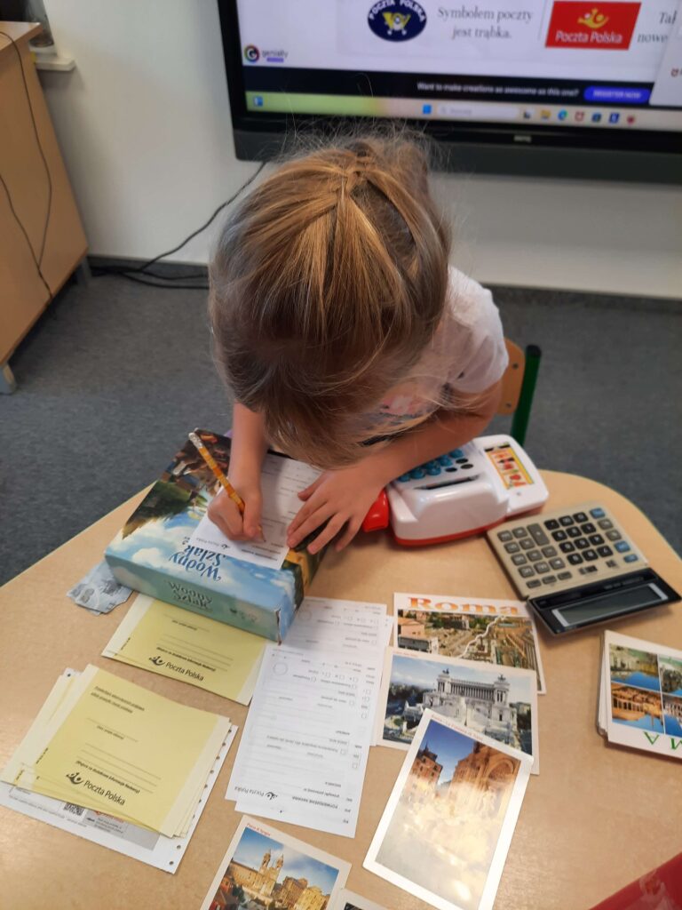18 października w Oddziale i Punkcie Przedszkolnym obchodziliśmy Dzień Poczty Polskiej. Poznaliśmy zawód listonosza, jego obowiązki oraz jakie przedmioty są mu niezbędne do wykonywania swojej pracy. Każdy przedszkolak już wie, w jaki sposób do jego domu trafiają listy oraz paczki. Podczas rannych zajęć dzieci poznały podstawowe pojęcia takie jak: poczta, list, adresat, nadawca oraz sortownia. Tego dnia przedszkolaki na zajęciach wykonały własne pocztówki, przyklejały znaczki i nauczyły się nadawać listy.