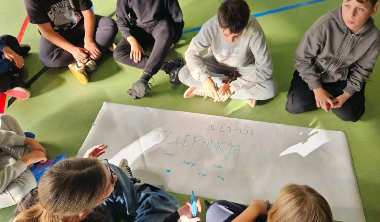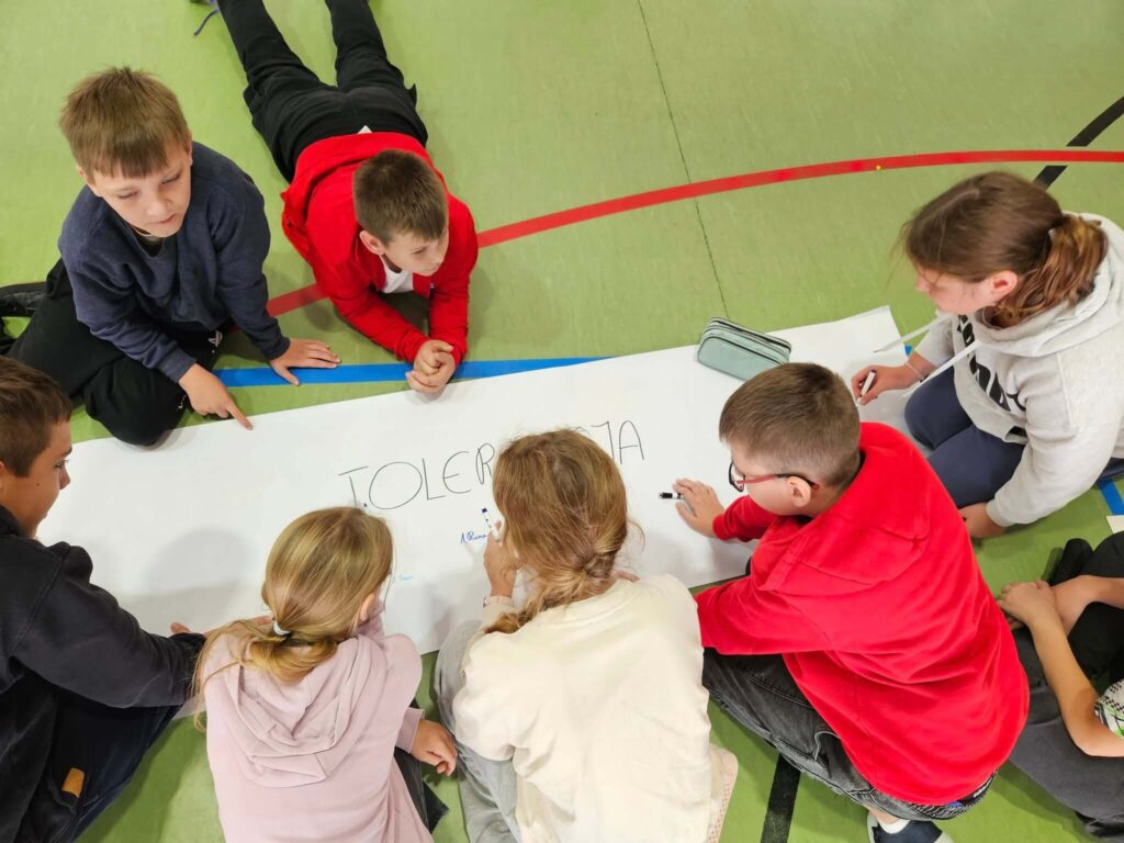 Dzisiejszy dzień upłynął pod znakiem tolerancji, współpracy i wzajemnego szacunku. Był doskonałą okazją do wspólnej refleksji nad tym, jak ważne jest akceptowanie różnic i budowanie dobrej atmosfery wśród rówieśników.Uczniowie wzięli udział w zajęciach grupowych, które wymagały wspólnego działania, myślenia, wyobraźni i sprytu. Pracując razem, uczyli się jak słuchać innych, dzielić się pomysłami i współpracować mimo różnic. Było kreatywnie, wesoło i wartościowo!