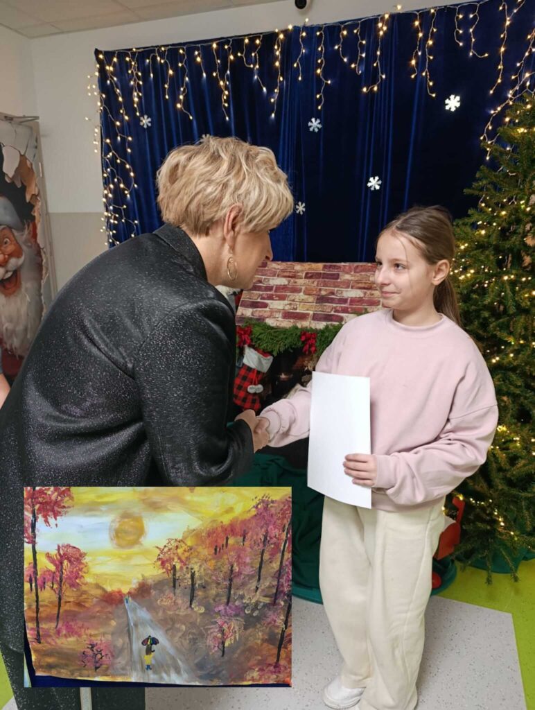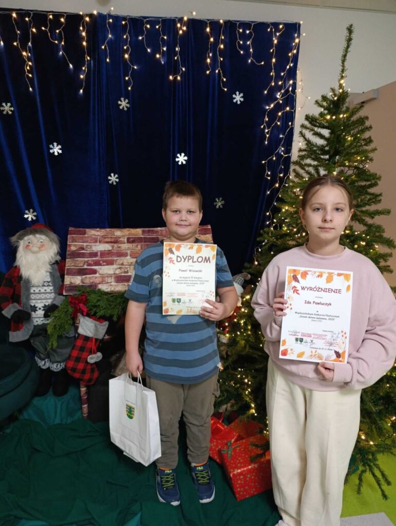 Z ogromną radością informujemy, że w Międzyszkolnym Konkursie „Jesień złotem malowana… 2025”, który odbył się w Szkole Podstawowej im. Danuty Siedzikówny „Inki” w Jeleniewie, nasi uczniowie odnieśli sukcesy w kategorii konkurs plastyczny. Była to doskonała okazja do rozwijania kreatywności, talentów artystycznych oraz czerpania radości z uroku jesiennej pory roku.