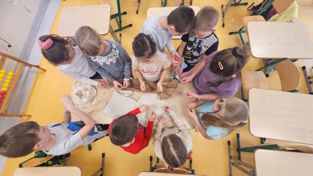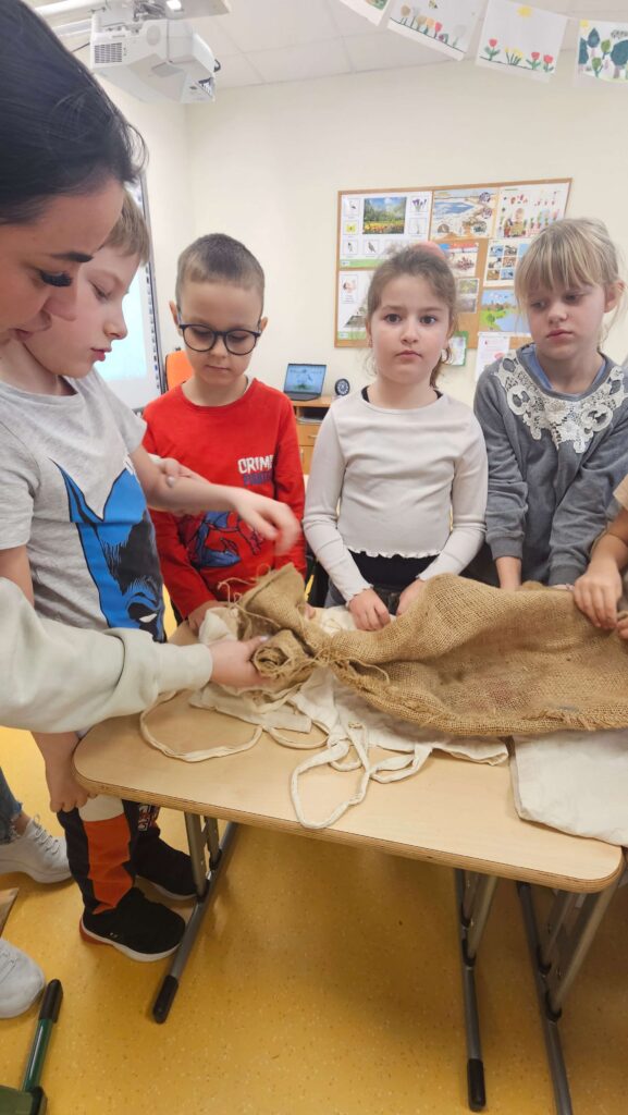 W ramach innowacji „Metki i piktogramy czytamy – wszystkie tajniki poznamy”, odbyły się kolejne zajęcia w klasie I. Cała lekcja poświęcona była obróbce tworzywa jakim jest len. Uczniowie dowiedzieli się, że do powstania tkaniny z lnu potrzeba dużo czasu i cierpliwości. Od zasiania rośliny do powstania z niej tkaniny mija kilka miesięcy. Len jest wytrzymały i odporny na tarcie i rozciąganie. Dzieci obejrzały lniane torby i worek oraz samodzielnie sprawdziły ich wytrzymałość. Lekcja wzbudziła ogromną ciekawość i zainteresowanie wśród uczniów.
