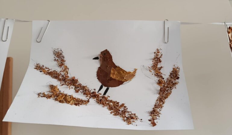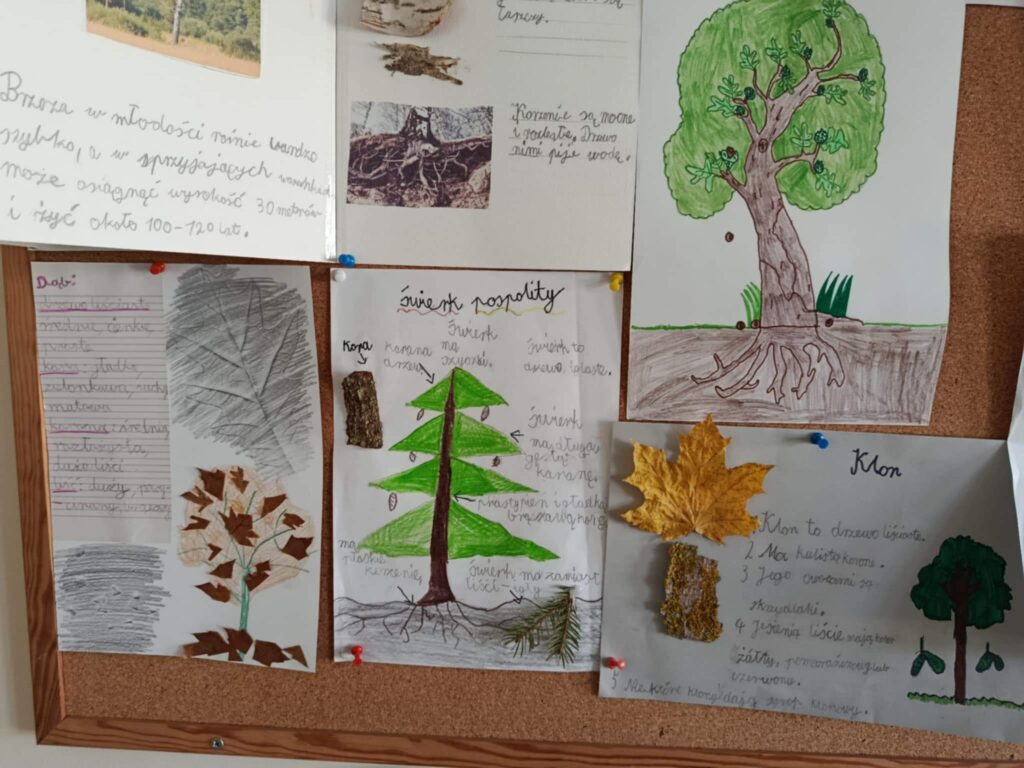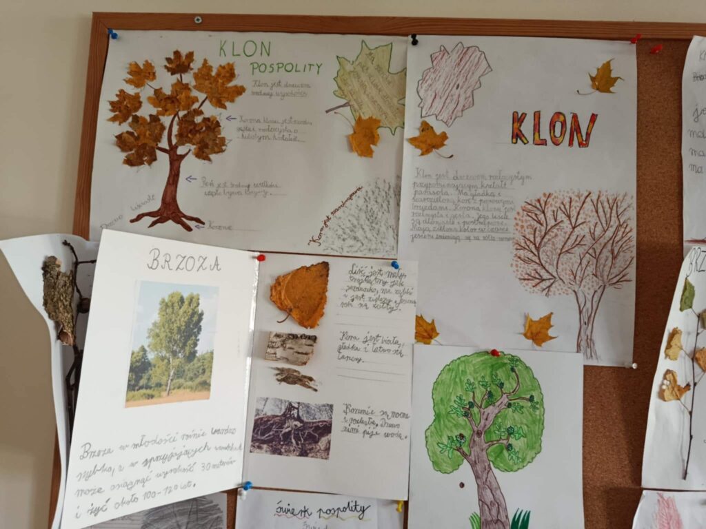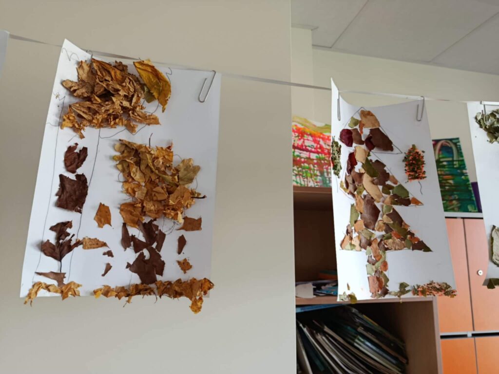 Dzieci z klasy II, obserwując zmieniającą się jesień, wykonywały różnorodne prace plastyczne. Lepiły z plasteliny kolorowe jesienne kompozycje, wypełniały karty obserwacji z motywem drzew, a także tworzyły piękne prace z darów jesieni – wykorzystując suche liście. Wszystkie prace powstały według własnej wyobraźni i zachwycały pomysłowością oraz jesiennymi barwami.