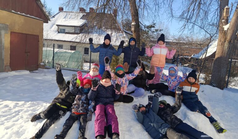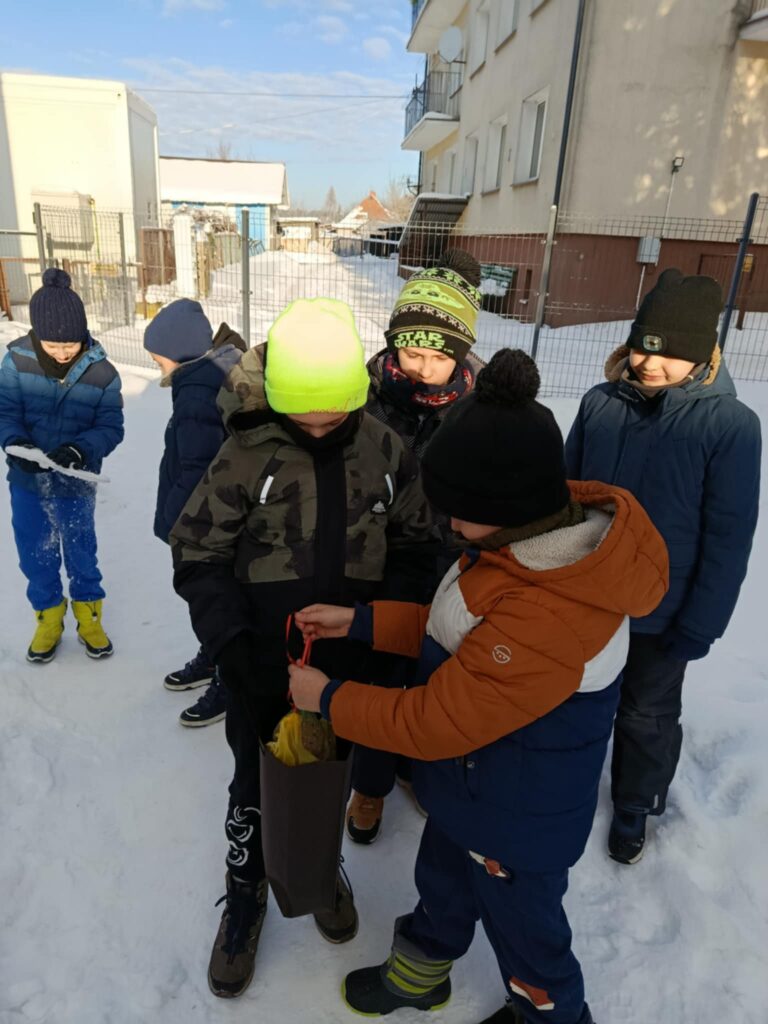 Klasa II podczas spaceru rozwiesiła wokół szkoły kule z jedzeniem dla ptaków, czyniąc dobry uczynek i pomagając skrzydlatym przyjaciołom przetrwać zimę. Na sam koniec spaceru uczniowie świetnie bawili się w śniegu, ciesząc się zimową aurą.