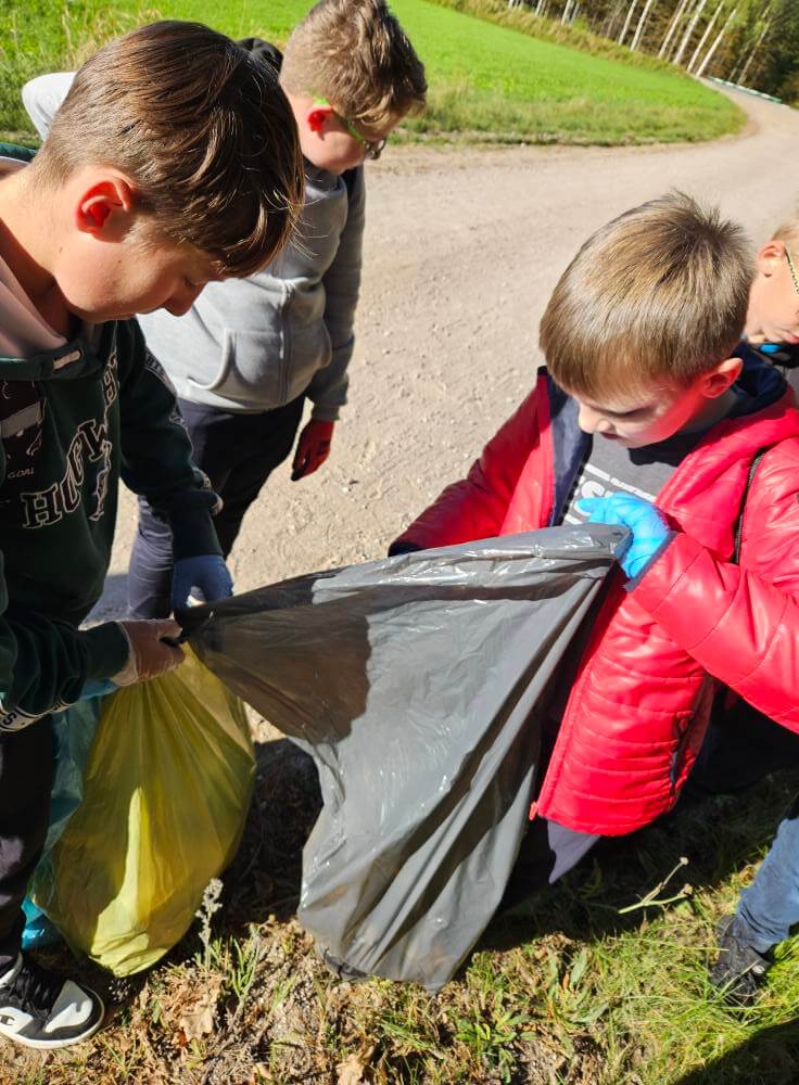 Zanim ruszyliśmy w teren, odbyła się prezentacja na temat segregacji odpadów, świadomej ochrony środowiska oraz bezpiecznego zbierania śmieci. Uczniowie z dużym zaangażowaniem przystąpili do działania, zbierając odpady i starannie je segregując – pokazując, że troska o przyrodę to nie tylko obowiązek, ale też odpowiedzialność i wspólna sprawa.Zwieńczeniem akcji było ognisko z kiełbaskami, wspólna integracja i zasłużony odpoczynek na świeżym powietrzu.Dziękujemy wszystkim partnerom i uczestnikom za wspólną troskę o czystość i piękno naszej małej ojczyzny!