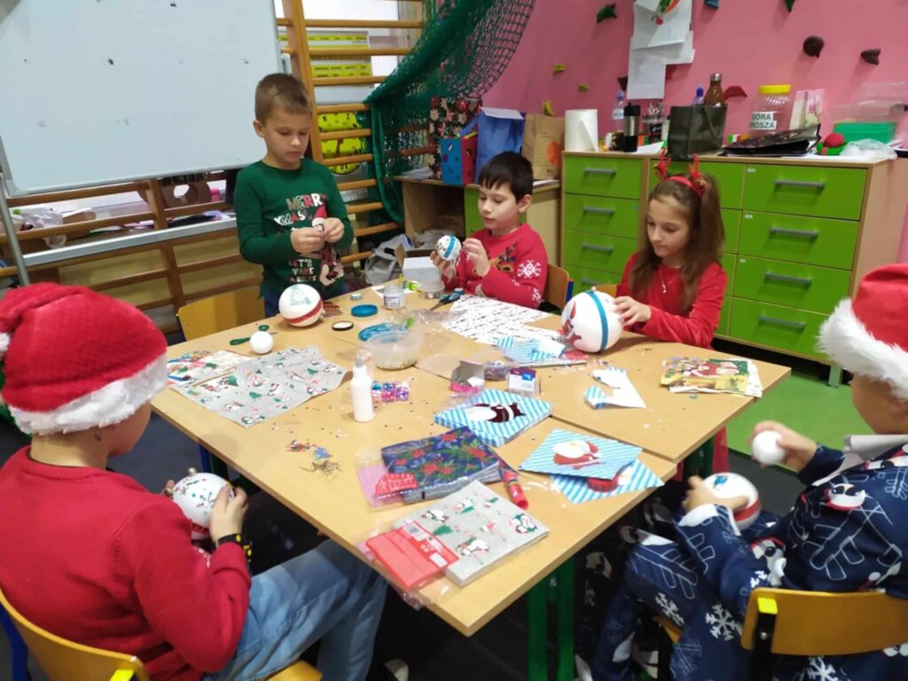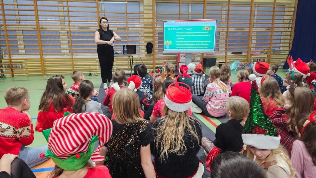 Rozpoczęliśmy od warsztatów zdrowego odżywiania, które miały na celu promowanie zasad zdrowego stylu życia i świadomych wyborów żywieniowych.. W tym czasie odbywała się również fantastyczna, profesjonalna sesja zdjęciowa, gdzie nasze szkolne Mikołaje, Mikołajki i Śnieżynki błyszczały w światłach fleszy. Na sali gimnastycznej rządziły tego dnia kleje, nożyczki, barwne bibuły i moc kreatywnych pomysłów. Przedświąteczne warsztaty, dały naszym uczniom możliwość wspólnego spędzenia czasu, integracji, odrobinki rywalizacji ale też wykazania się zdolnościami plastycznymi I technicznymi. Jak na Mikołajki przystało, nie mogło też zabraknąć prezentów, niespodzianek i mnóstwa radości.