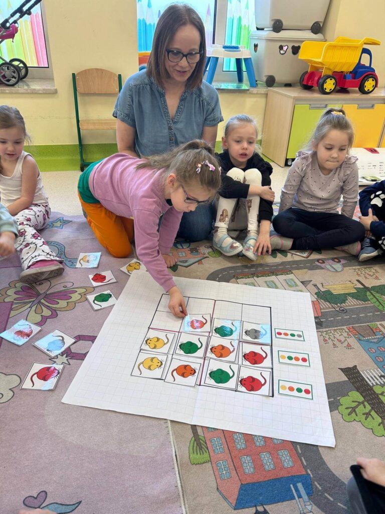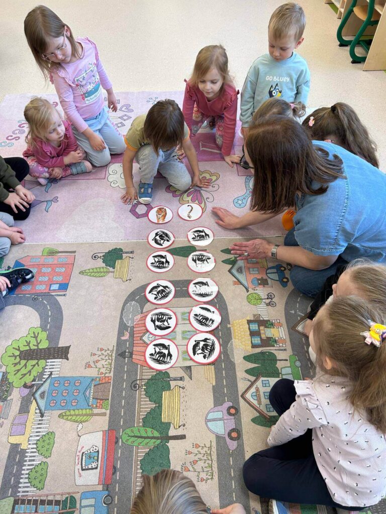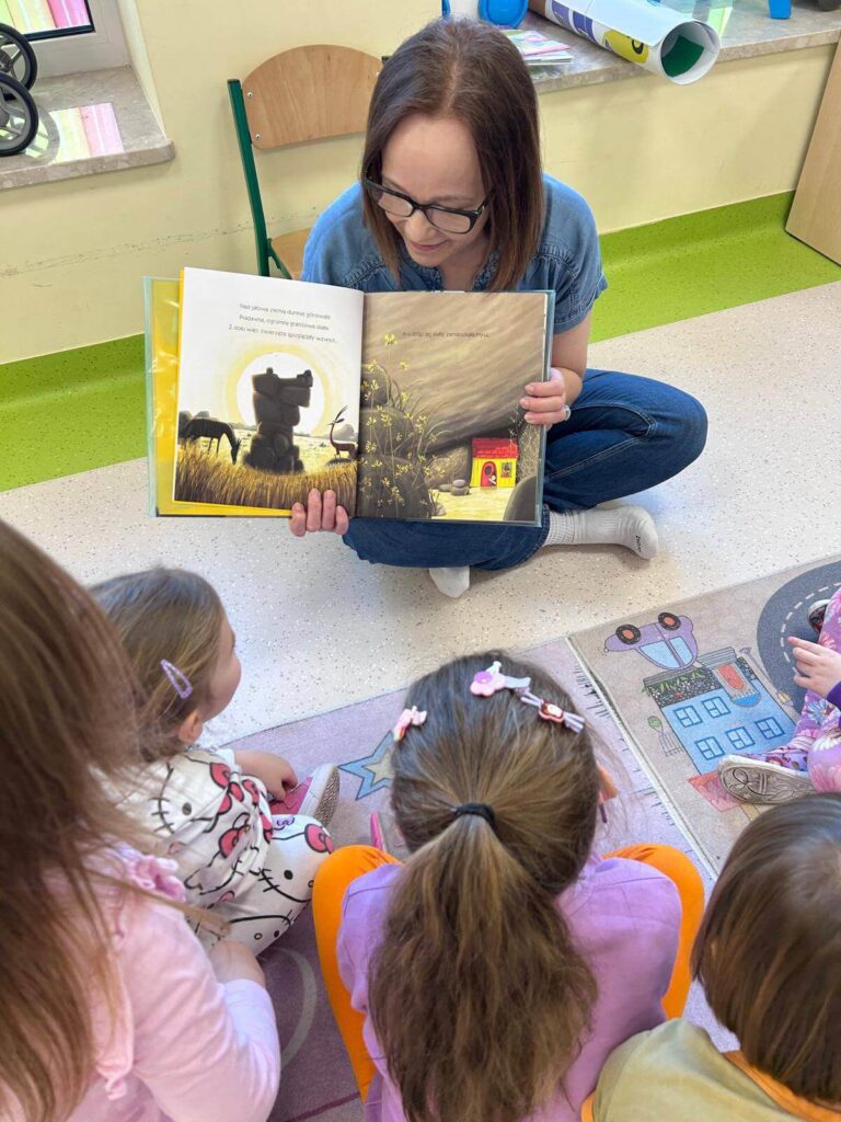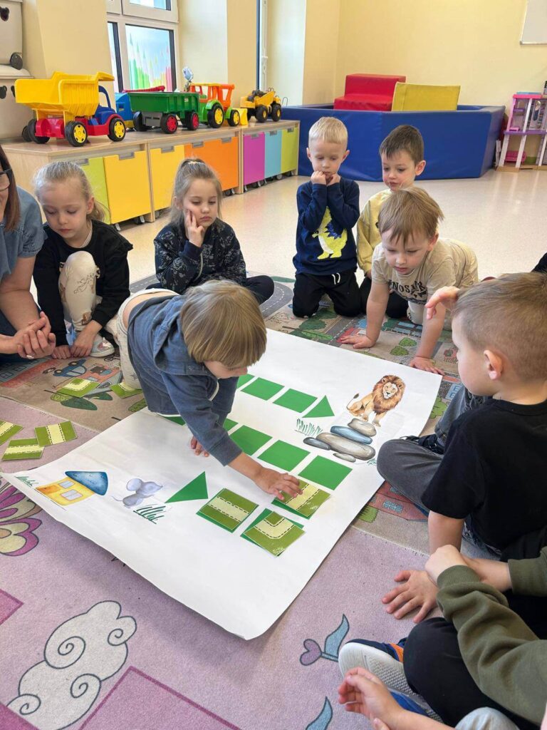 Podczas ostatniego spotkania bibliotecznego dzieci z Punktu Przedszkolnego przeniosły się w świat opowieści „Mysz, która chciała być lwem” .Wspólne czytanie stało się inspiracją do rozmów o marzeniach, odwadze i wierze w siebie. Następnie dzieci z radością uczestniczyły w zabawach z kodowaniem oraz grze memory, rozwijając przy tym swoją pamięć i logiczne myślenie.To było wyjątkowe spotkanie pełne uśmiechu, zaangażowania i dobrej zabawy