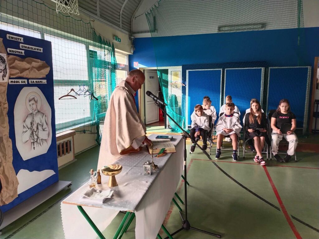 Dnia 18 września obchodziliśmy święto Świętego Stanisława Kostki, patrona dzieci i młodzieży. Z tej okazji w szkole odbyło się nabożeństwo pod przewodnictwem ks. proboszcza Klemensa Litwina, inagurujące rok katechetyczny 2024/2025.