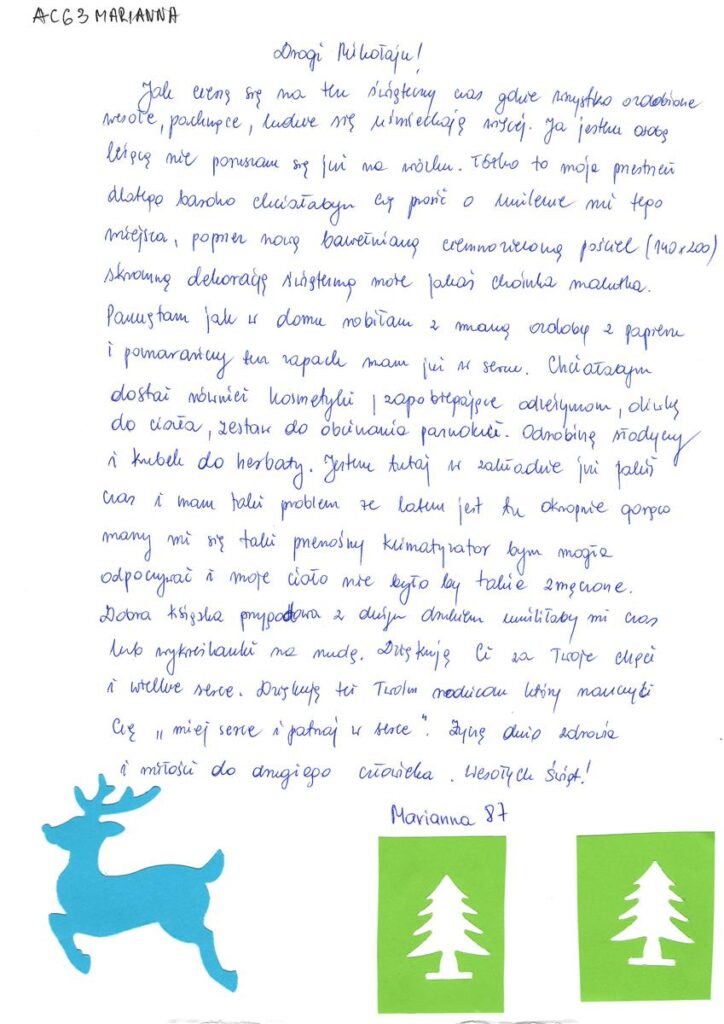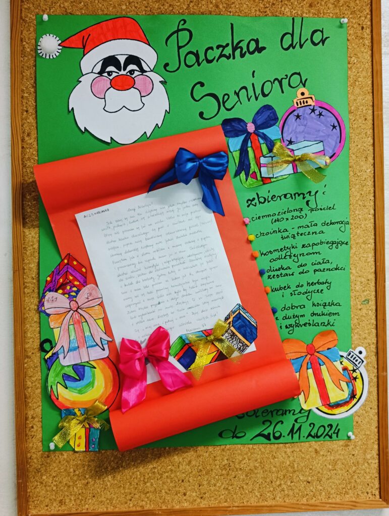 Samorząd Uczniowski zaprasza do wzięcia udziału w corocznej akcji Paczka dla Seniora. W tym roku wybraliśmy Panią Mariannę, która przebywa w Samodzielnym Zespole Zakładów Opieki Długoterminowej w Augustowie.