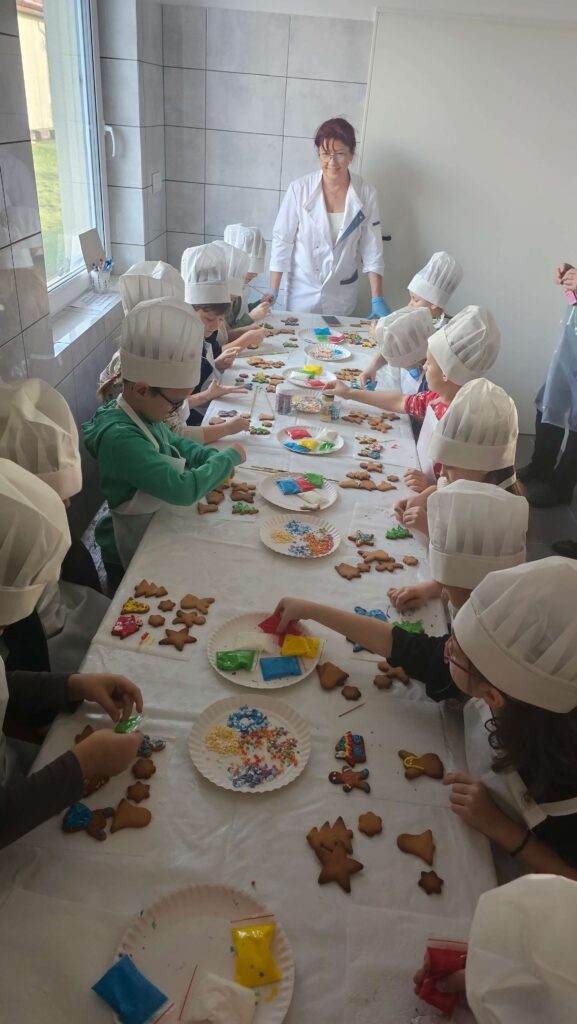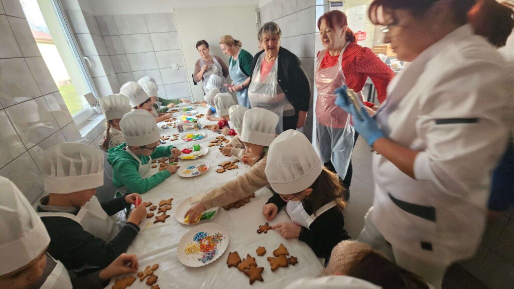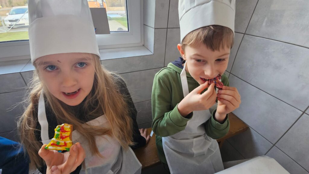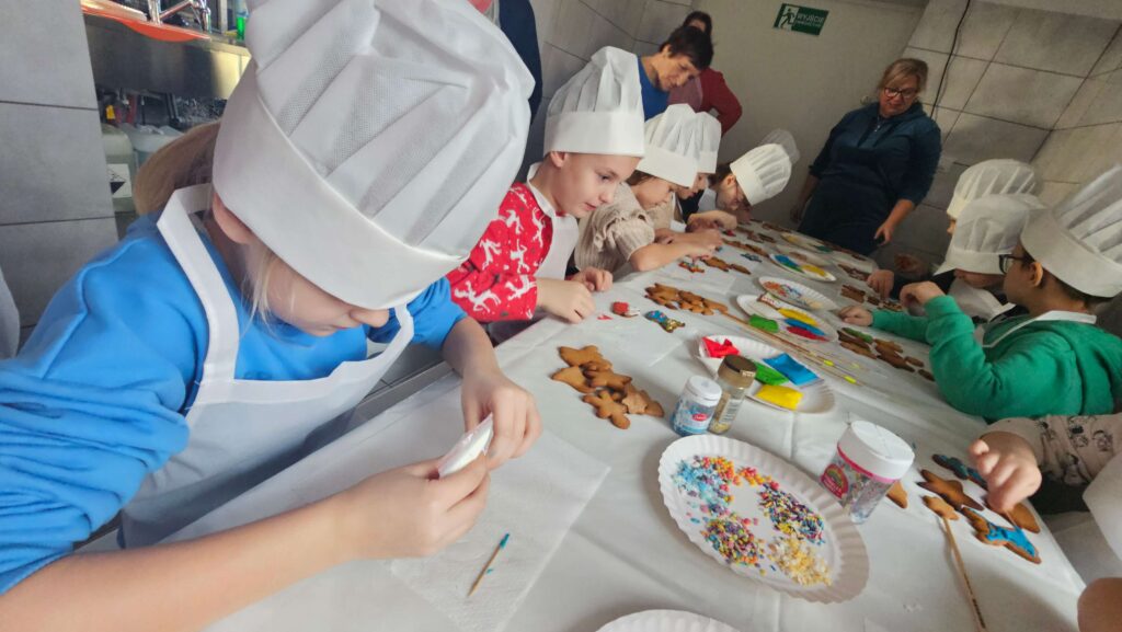 W święta każde dziecko wie jak pierniczki zdobi się. W świątecznej atmosferze odbyło się spotkanie uczniów klasy pierwszej z paniami z Koła Gospodyń w Sobolewie. Prowadzące udzielały cennych wskazówek i porad jak należy dekorować pierniczki. Dzięki temu udało się stworzyć wiele oryginalnych wzorów, a wspólna degustacja była “smacznym” podsumowaniem tego miłego spotkania.