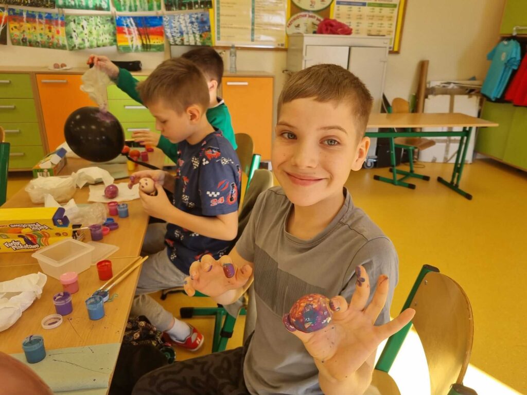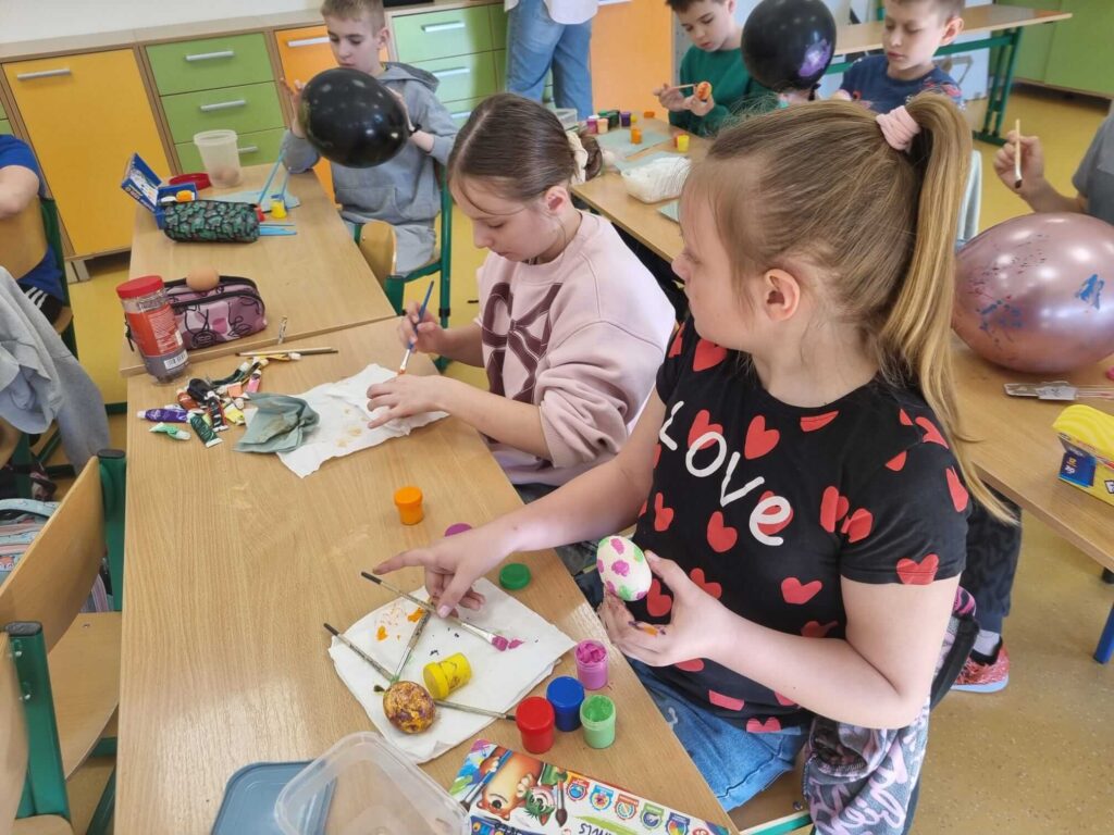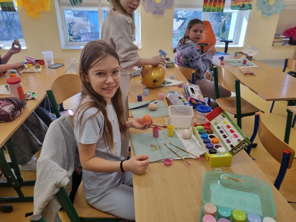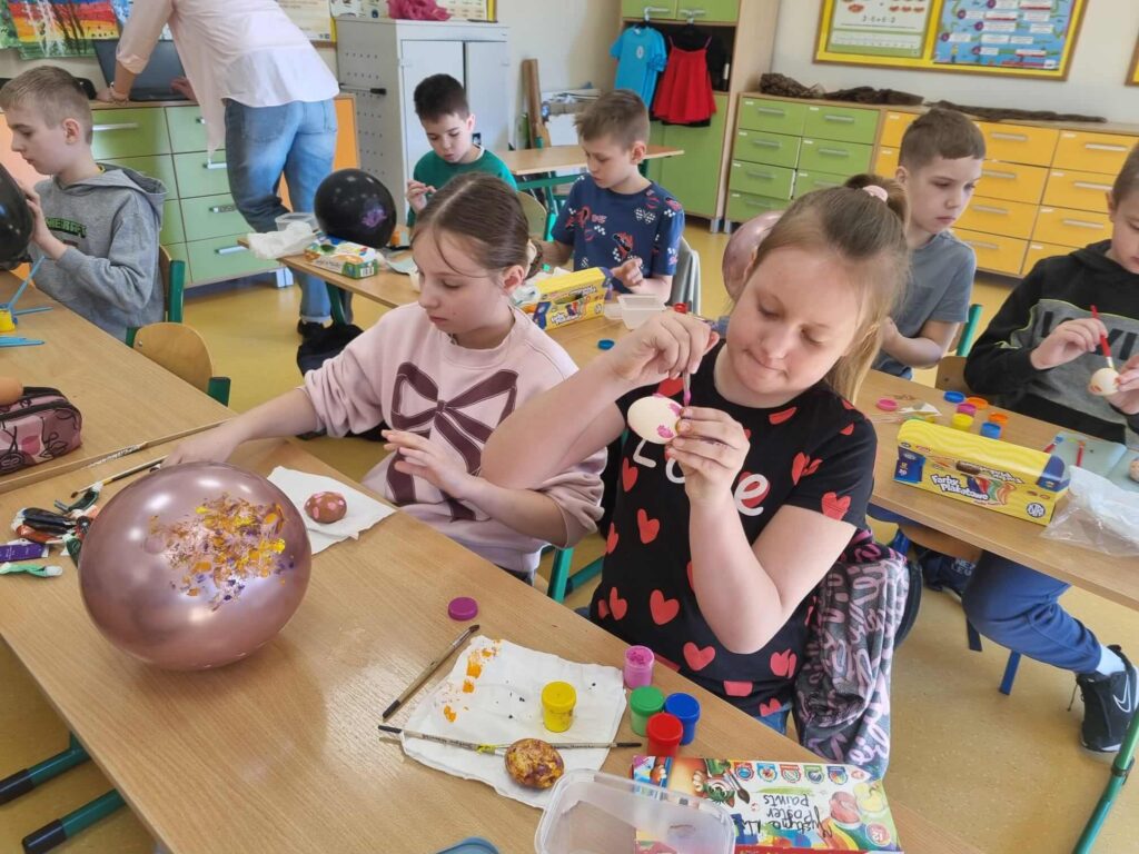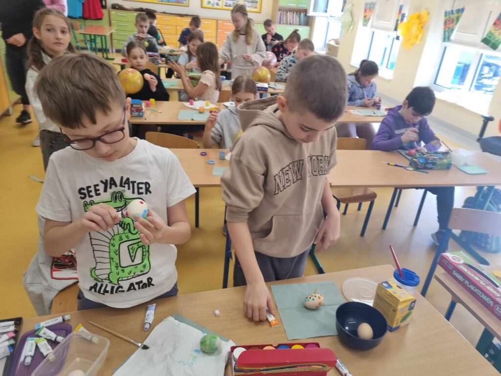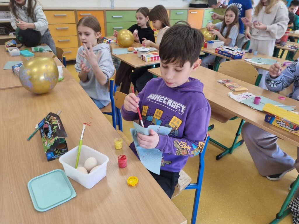 W klasie III zrobiło się naprawdę świątecznie. Uczniowie z ogromnym zaangażowaniem tworzyli piękne, kolorowe pisanki. Było dużo kreatywności, radości i wspólnej zabawy. To wspaniały sposób na kultywowanie wielkanocnych tradycji i rozwijanie wyobraźni.