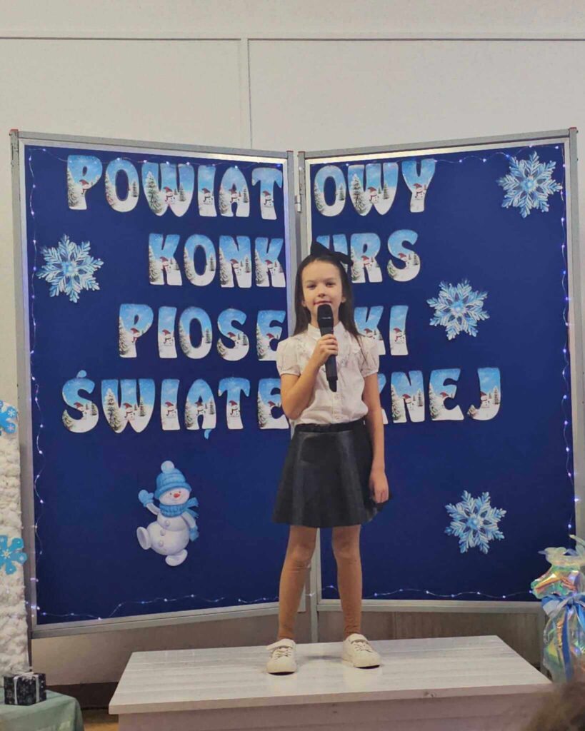 Uczennice z klasy I, II, III, IV swoim śpiewem podczas Powiatowego Konkursu Piosenki Świątecznej przeniosły słuchaczy w ten wyjątkowy czas.