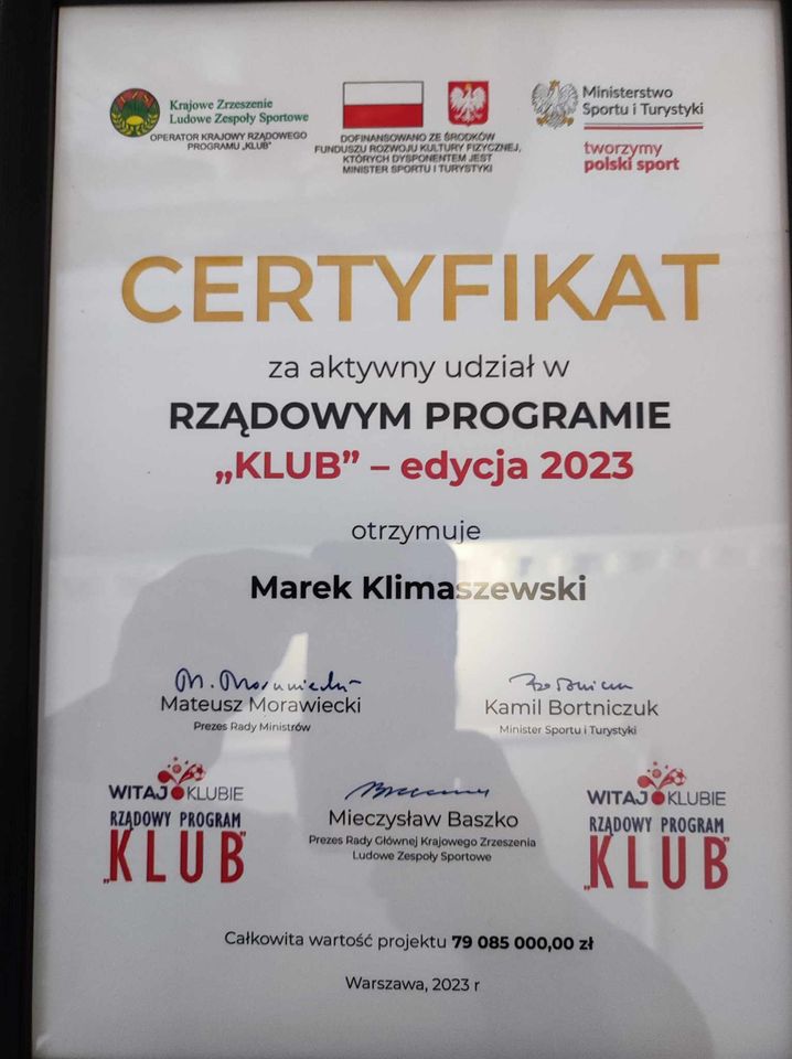 z rąk posła, a jednocześnie prezesa Ludowych Zespołów Sportowych Mieczysława Baszko odebrał Marek Klimaszewski. Fundusze przeznaczone są na zajęcia piłki siatkowej dla dziewcząt. Jednocześnie część pieniędzy zostanie przeznaczona na zakup sprzętu sportowego.