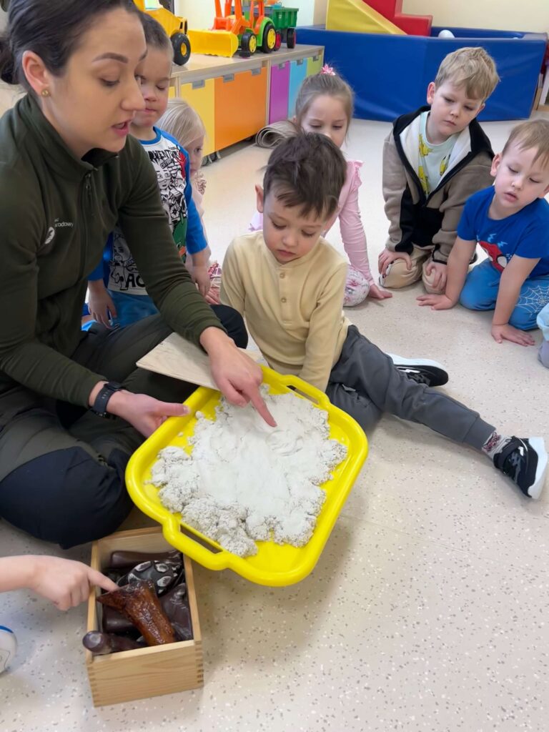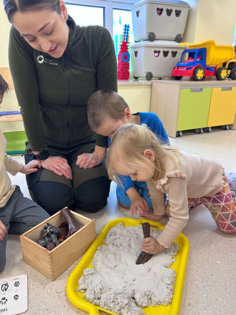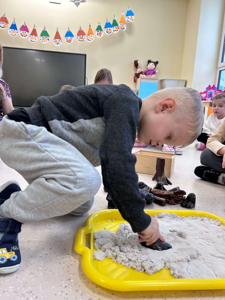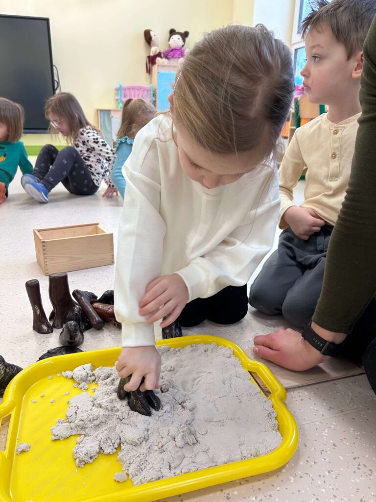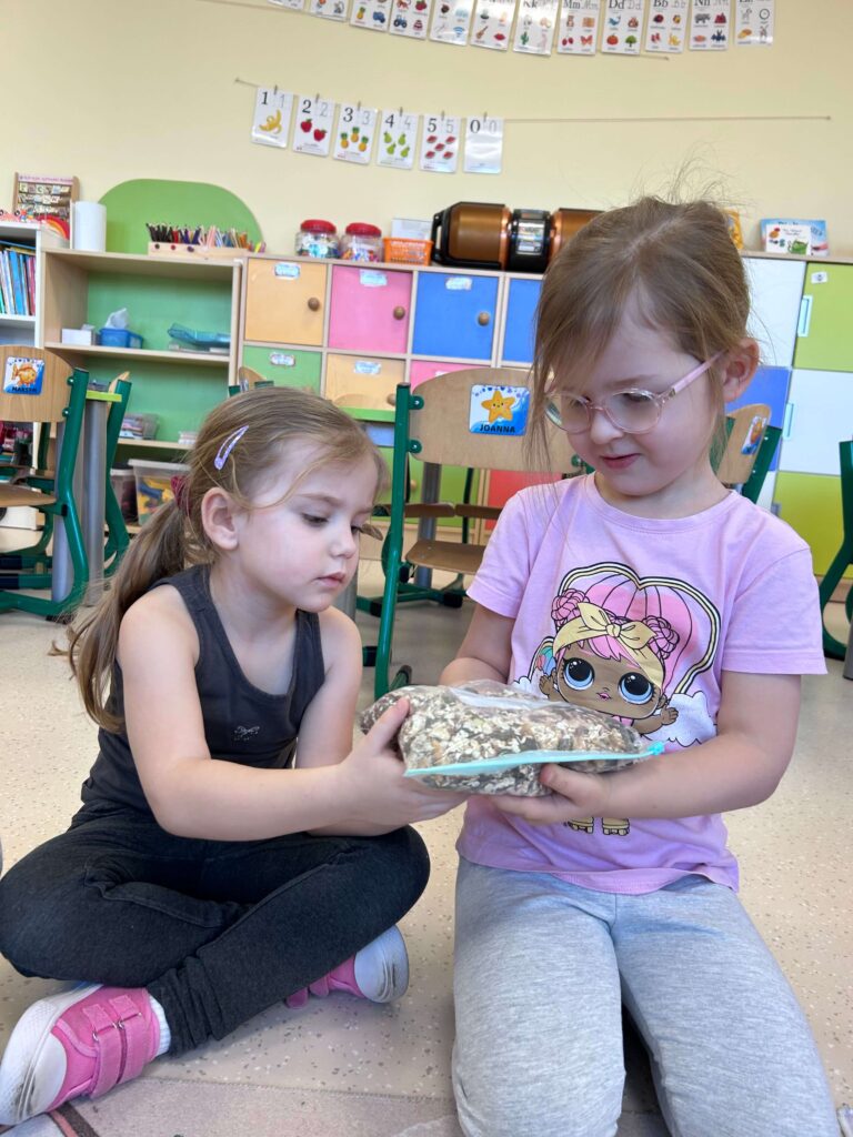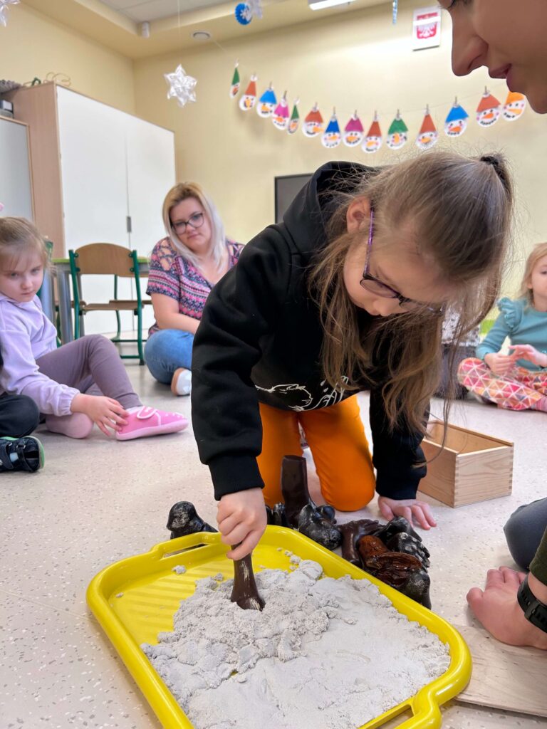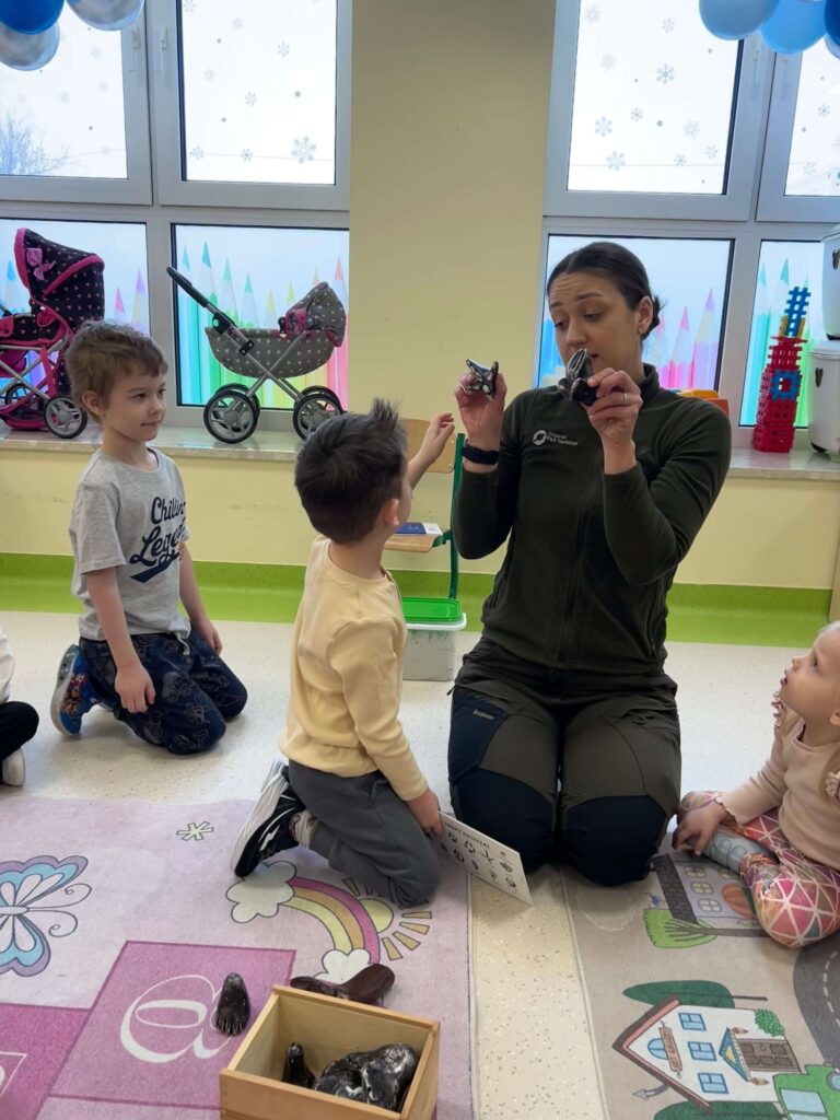 W minionym tygodniu nasze przedszkolaki wzięły udział w wyjątkowym cyklu zajęć przyrodniczych, podczas których zgłębiały tajemnice świata ptaków i zwierząt leśnych. Dzieci uczyły się rozpoznawać ptaki po wyglądzie, dowiedziały się, czym można je dokarmiać oraz jak mądrze pomagać im przetrwać zimowy czas. W ramach zajęć w naszej grupie została zorganizowana zbiórka karmy dla ptaków. Dzięki ogromnemu zaangażowaniu dzieci i rodziców powstała wyjątkowa mieszanka pełna przysmaków – słonecznika, słoniny, orzechów i innych smakołyków. Od tej pory ptaki są codziennie dokarmiane w przedszkolnym karmniku, który chętnie odwiedzają sikorki i sroki. Zwieńczeniem tygodnia było niezwykle ciekawe spotkanie z mamą jednego z przedszkolaków, która na co dzień pracuje jako leśnik. Dzieci dowiedziały się, jakie ślady zostawiają leśne zwierzęta, czym są tropy, jak zwierzęta radzą sobie zimą w lesie oraz w jaki sposób człowiek może im pomóc. To był tydzień pełen wiedzy, radości i rozwijania wrażliwości na przyrodę. Dziękujemy wszystkim za zaangażowanie.