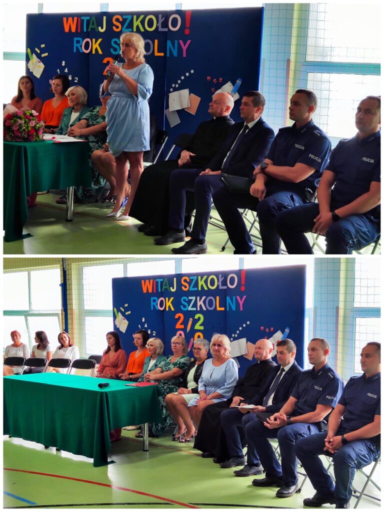 Inauguracja roku szkolnego 2023/2024 w Szkole Podstawowej im. Lotników Polskich w Płocicznie-Tartak za nami. Licznie przybyłych na uroczystość gości, rodziców, uczniów oraz pracowników szkoły, powitała Pani Dyrektor Katarzyna Gałaszewsk, która przedstawiła kadrę pedagogiczną, przekazała informacje dotyczące organizacji pracy szkoły oraz plany na przyszłość. Następnie głos zabrali goście. Zastępca Wójta Gminy Suwałki, Pan Krzysztof Andrzej Gwaj wręczył Pani Dyrektor akt powierzenia stanowiska dyrektora szkoły na kolejne pięć lat. Jeszcze raz serdecznie gratulujemy! Ksiądz Proboszcz Klemens Litwin pobłogosławi szkolną społeczność, natomiast przedstawiciele policji – aspiranci Paweł Marcówka i Mariusz Romanowski przypomnieli o bezpieczeństwie w szkole oraz zachęcili do dalszej współpracy. Wszystkim uczniom życzymy sukcesów w nowym roku szkolnym, a nauczycielom cierpliwości i zadowolenia z wykonywanej pracy.