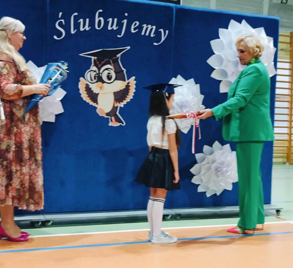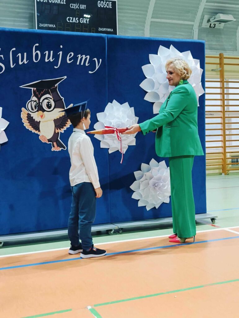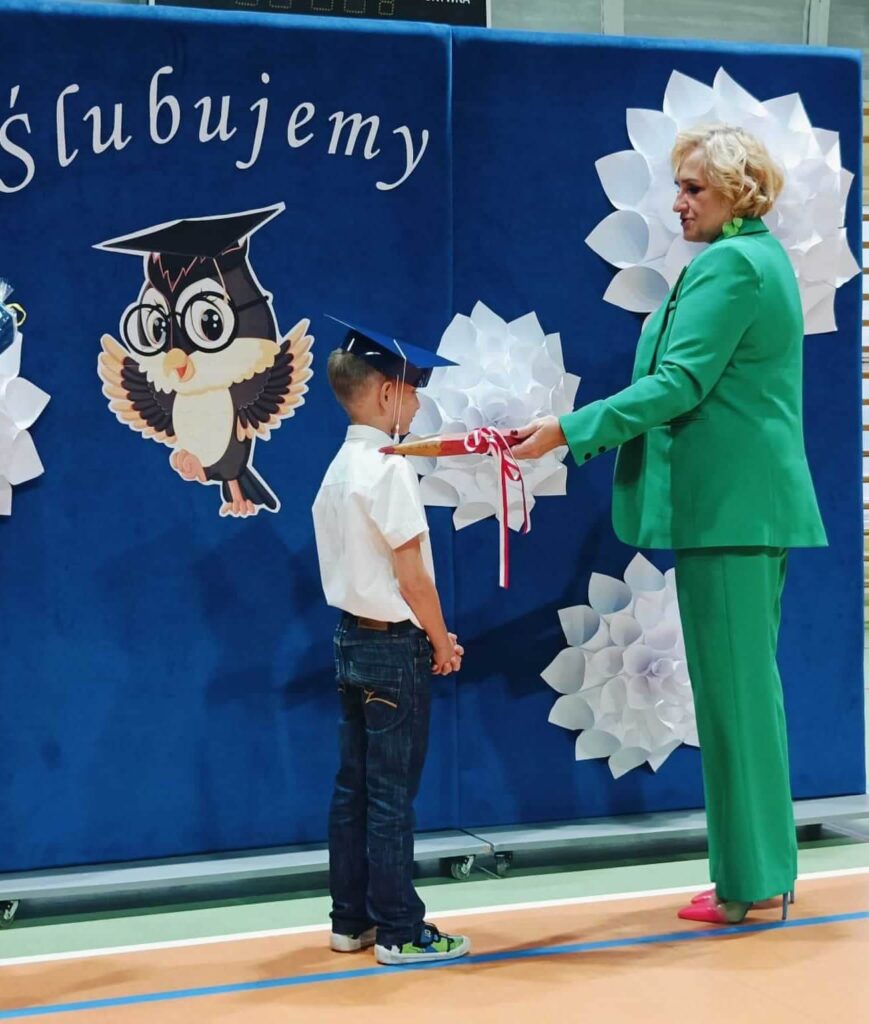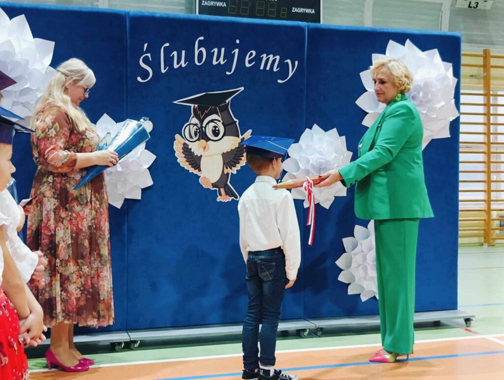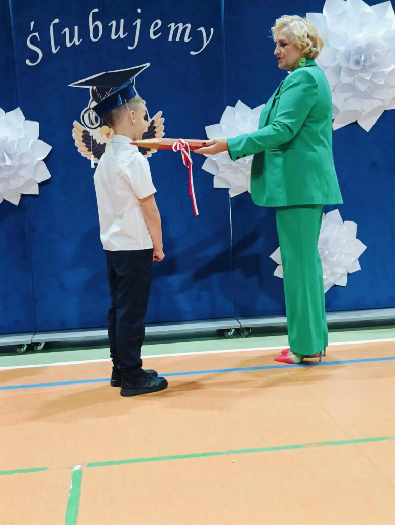 14.10.2024 roku pierwszoklasiści gotowi, odświętnie ubrani i bardzo przejęci przystąpili do zaprezentowania swoich umiejętności. Udowodnili, że potrafią pięknie śpiewać, tańczyć, dodawać i czytać. Posiadają wiedzę o swojej ojczyźnie i znają przepisu ruchu drogowego. W niezwykle podniosłej atmosferze, przed pocztem sztandarowym, pierwszoklasiści ślubowali być dobrymi uczniami i Polakami. Dbać o dobre imię swojej klasy i szkoły.