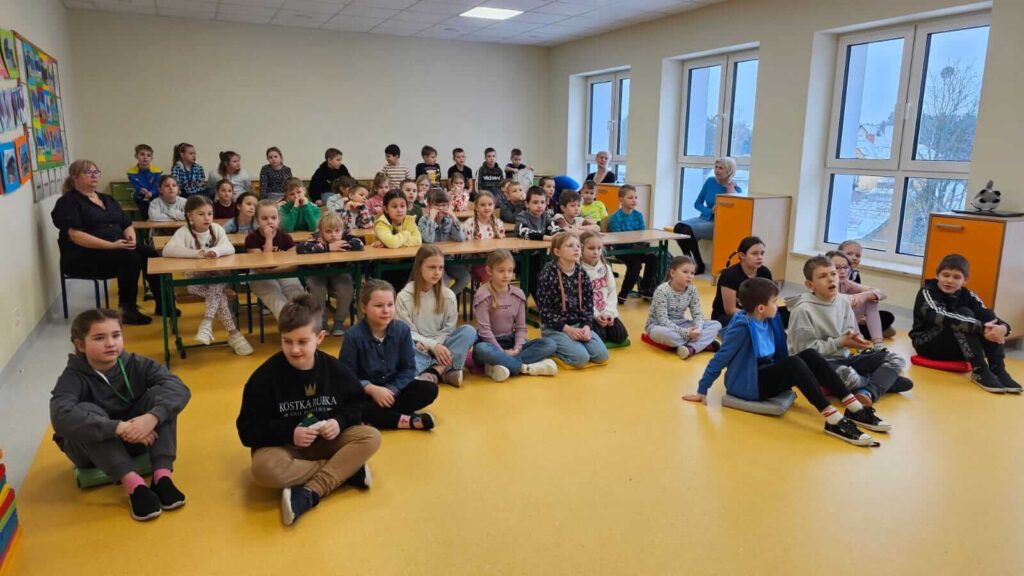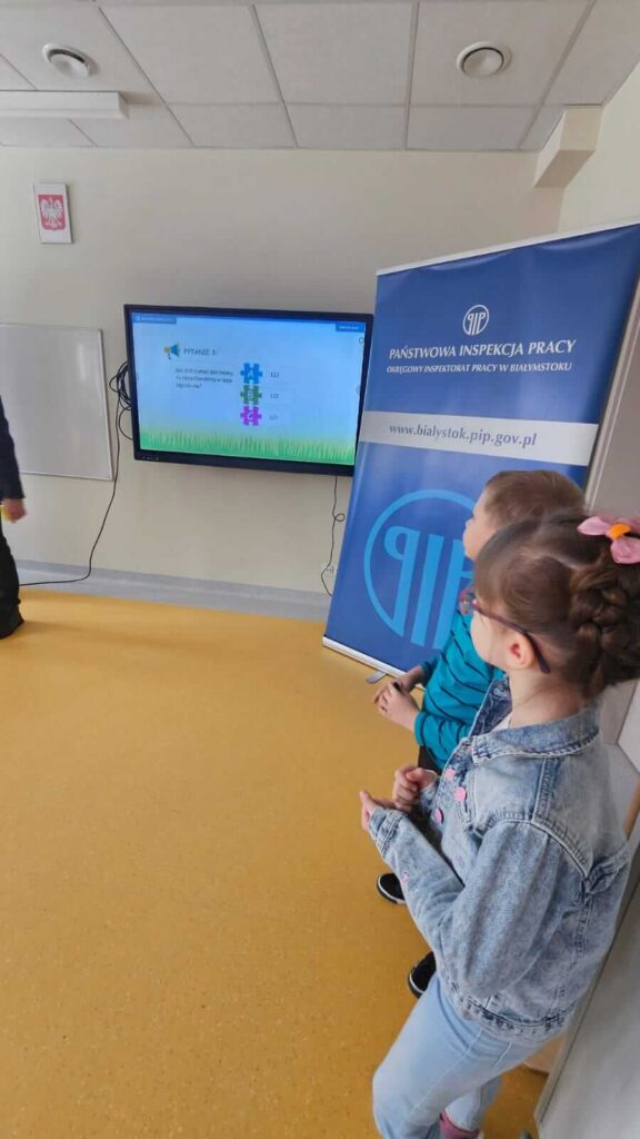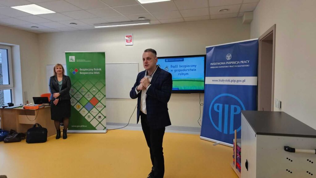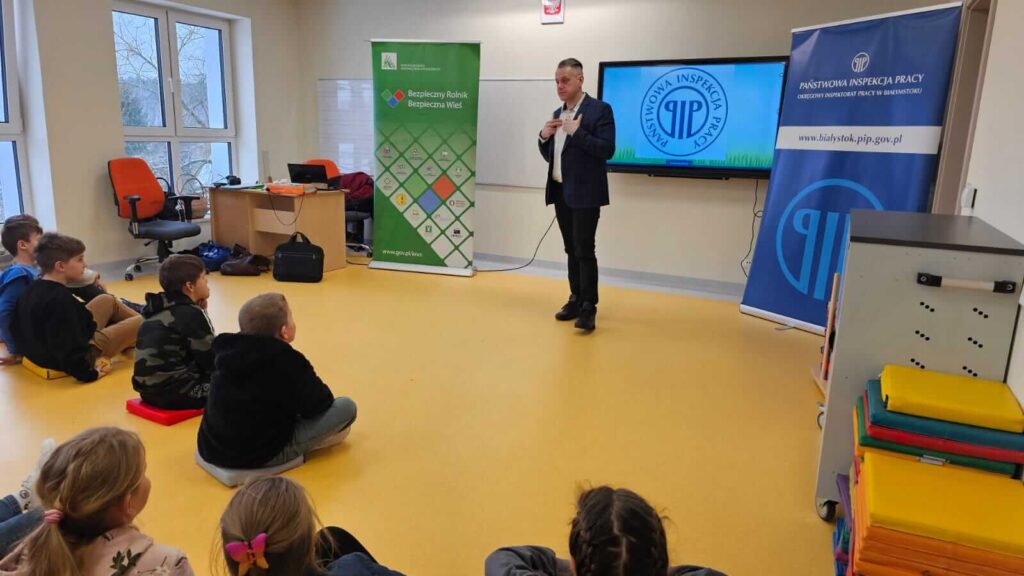 Uczniowie klas I – III uczestniczyli w spotkaniu z pracownikami Państwowej Inspekcji Pracy i KRUS-u. Goście przybliżyli zasady bezpieczeństwa w miejscu pracy i gospodarstwie rolnym. Dzieci obejrzały film edukacyjny o niebezpiecznych sytuacjach jakie mogą przytrafić się w gospodarstwie.