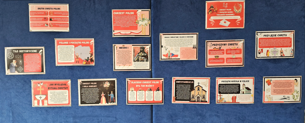 14 kwietnia 966 roku książę Mieszko I przyjął chrzest, dając początek chrystianizacji ziem polskich. Wydarzenie to miało znaczenie nie tylko religijne, ale też polityczne i kulturowe. To początek państwa polskiego, jakie jest nam znane do dziś. Uczniowie klas I – VIII podzieleni na grupy rozwiązali dziś krzyżówkę „ bieganą”, a z wybranych liter ułożyli hasło dnia. Zadanie wykonali na 6! Brawo!