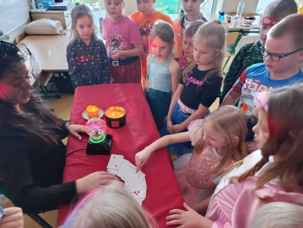 Nasza szkoła zamieniła się w prawdziwą krainę tajemnic! Było lanie wosku, kartki z wróżbami, wędrujące buty i mnóstwo śmiechu. Każdy mógł odkryć, co czeka go w przyszłości – od przyszłych zawodów, przez podróże życia, aż po niespodzianki od losu! Nie zabrakło też andrzejkowych konkursów, tańców i klimatycznych dekoracji, które przeniosły nas prosto do świata magii. To był dzień pełen dobrej energii, kreatywności i wspólnych chwil, które na długo zostaną w naszej pamięci!
