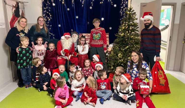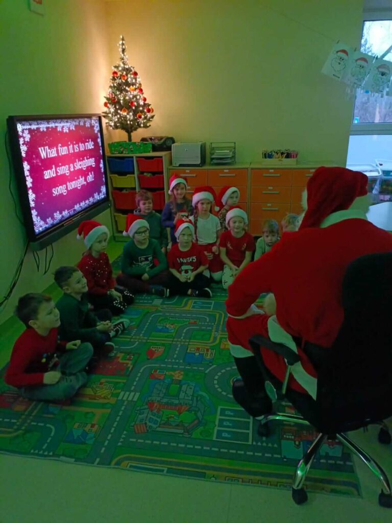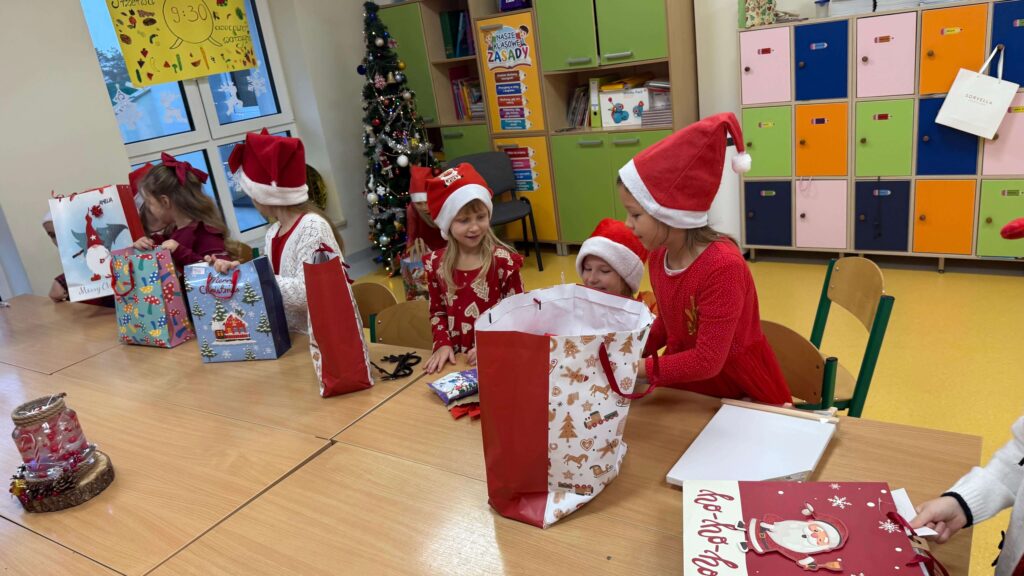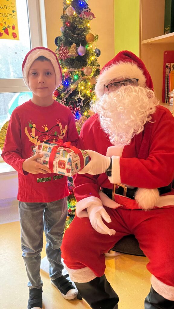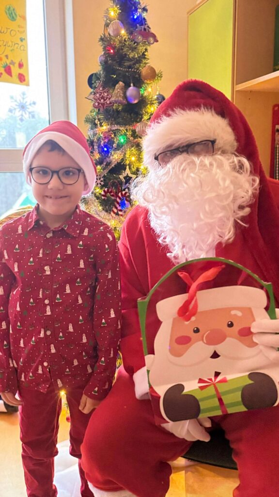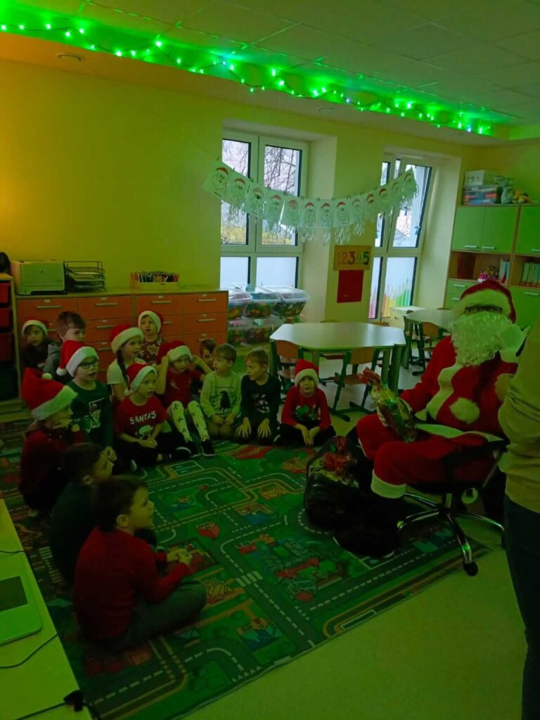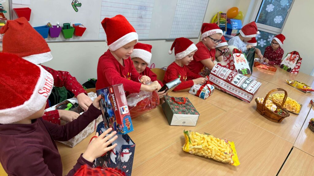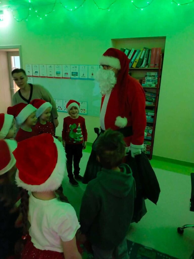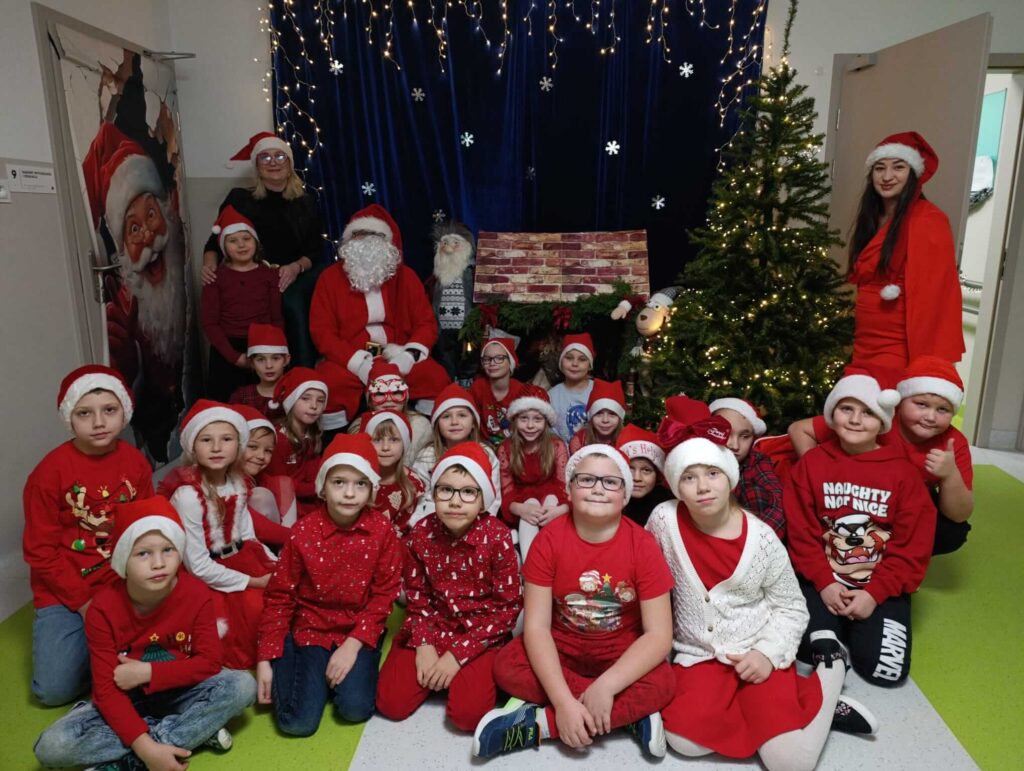 Nasza szkoła po raz kolejny zamieniła się w pełną świątecznej magii krainę, w której królował Święty Mikołaj. Od samego rana na korytarzach panowała radosna atmosfera – uczniowie przyszli w czerwonych czapkach, reniferowych opaskach i świątecznych sweterkach, a uśmiechy nie znikały z ich twarzy. W klasach odbywały się mikołajkowe spotkania, podczas których Święty Mikołaj obdarowywał dzieci drobnymi upominkami. Mikołajki w naszej szkole to nie tylko prezenty, lecz przede wszystkim czas radości, integracji i budowania świątecznego ducha – i dokładnie tak było również w tym roku!