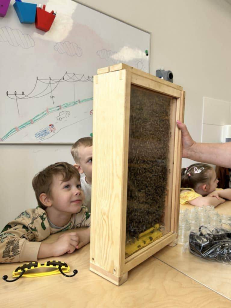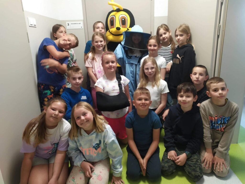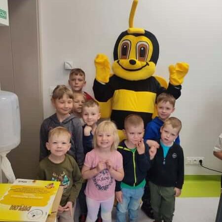 Dzieci z dużym zainteresowaniem słuchały o życiu pszczół, ich roli w przyrodzie i pracy pszczelarza.Mogły z bliska zobaczyć prawdziwy ul i sprzęt pszczelarski, a także zadać mnóstwo pytań. To była świetna przygoda, która rozbudziła dziecięcą ciekawość i zachwyt nad światem pszczół!