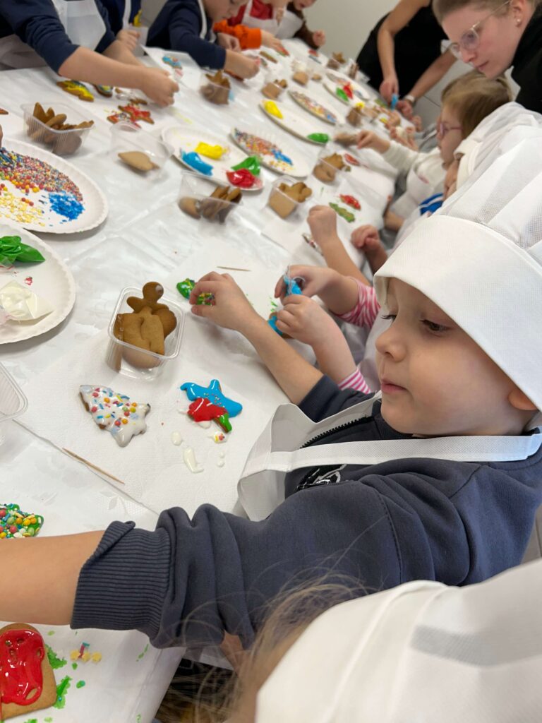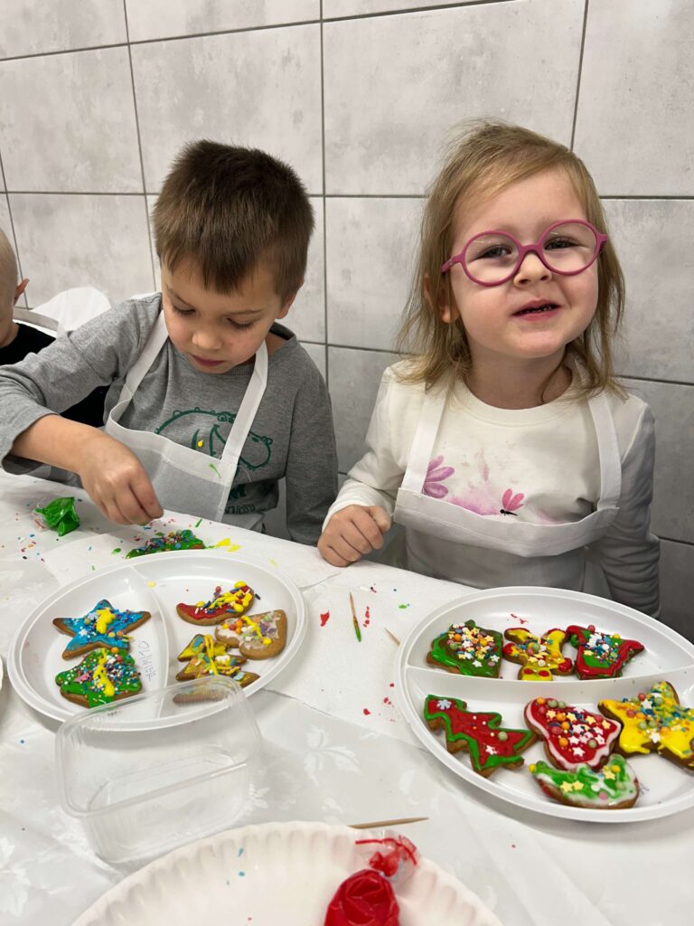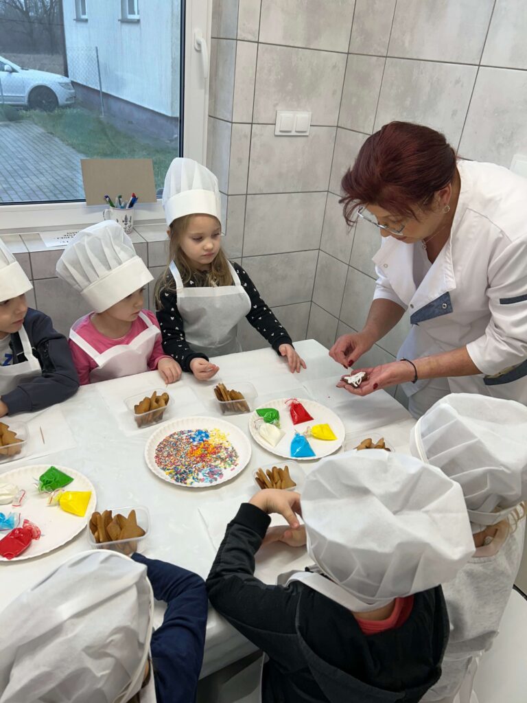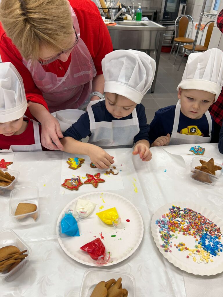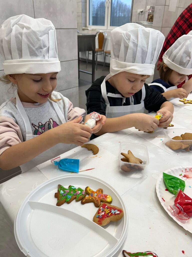 W ostatni czwartek przed Świętami Bożego Narodzenia najmłodsi z Punku Przedszkolnego wybrali się do Inkubatora Przetwórstwa Lokalnego w Sobolewie, gdzie mieli okazję poznać tajniki dekorowania pierniczków. Była to świetna okazja na kreatywne szaleństwo, ponieważ dzieci miały do dyspozycji upieczone pierniczki w różnych kształtach, kolorowe lukry oraz posypki. Dziękujemy serdecznie Pani Małgorzacie Dojnikowskiej za przygotowanie warsztatów i ciepłe przyjęcie dzieci.