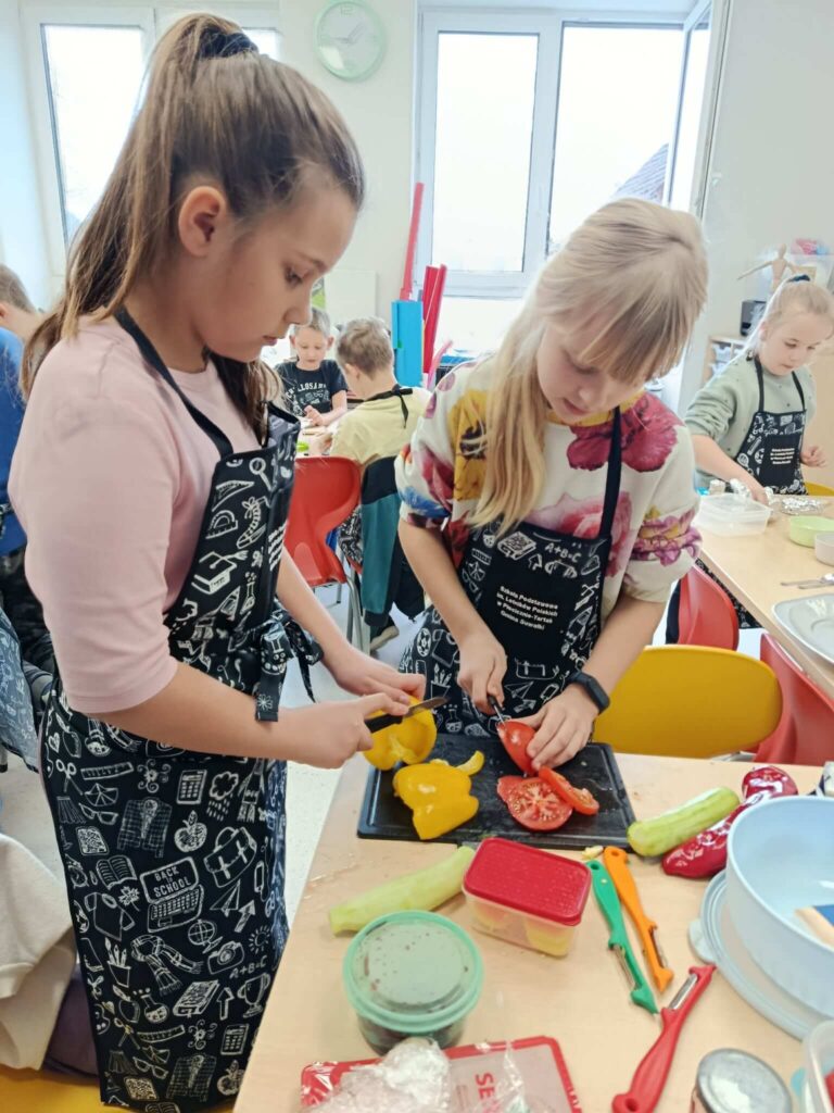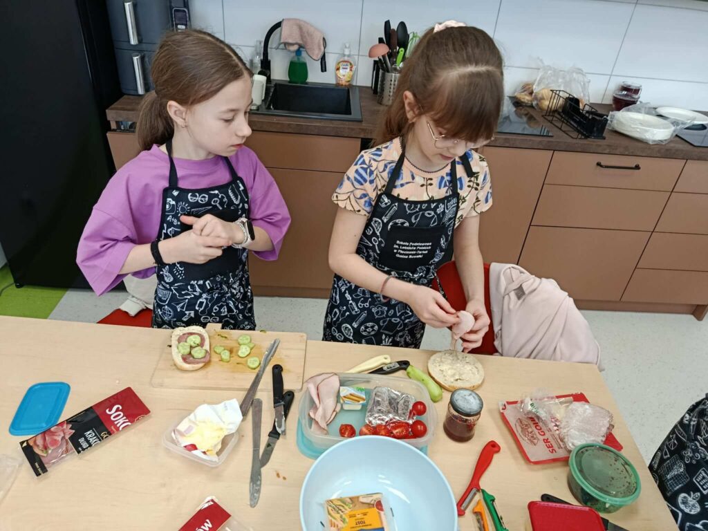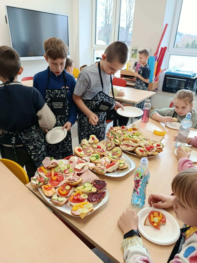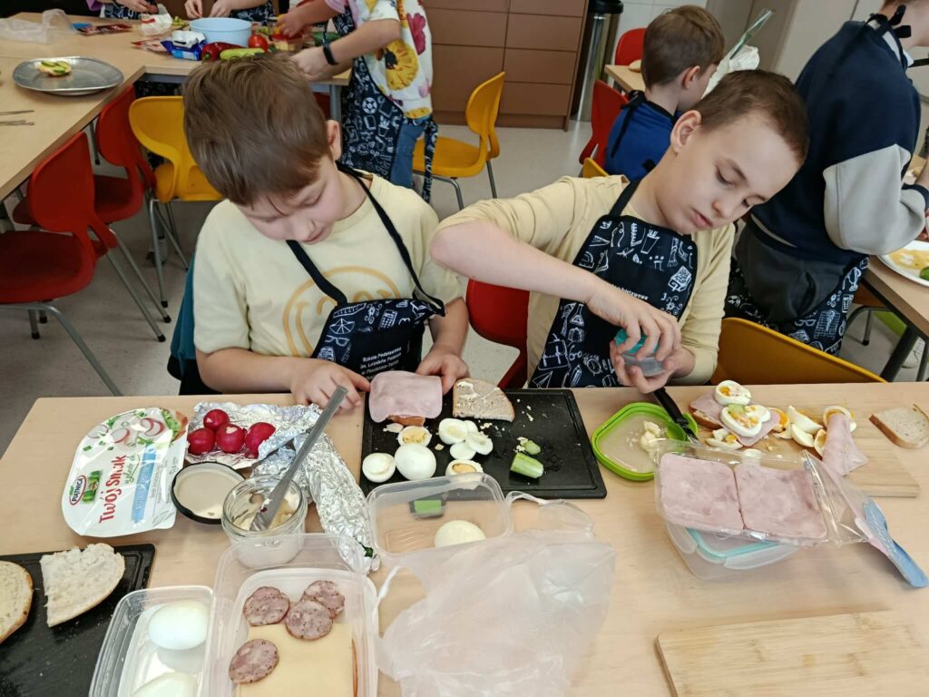 Dziś uczniowie klasy 2 wzięli udział w wyjątkowych, wiosennych zajęciach kulinarnych. Dzieci samodzielnie przygotowywały kanapki, dbając o każdy szczegół – od smarowania pieczywa po staranne układanie składników.