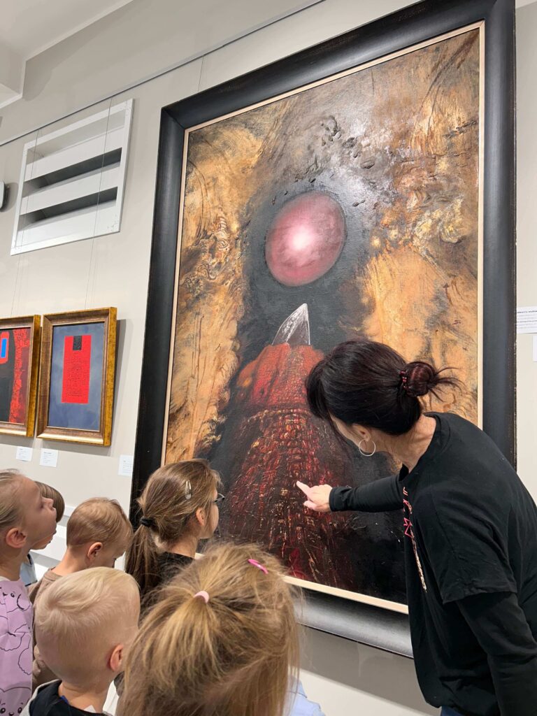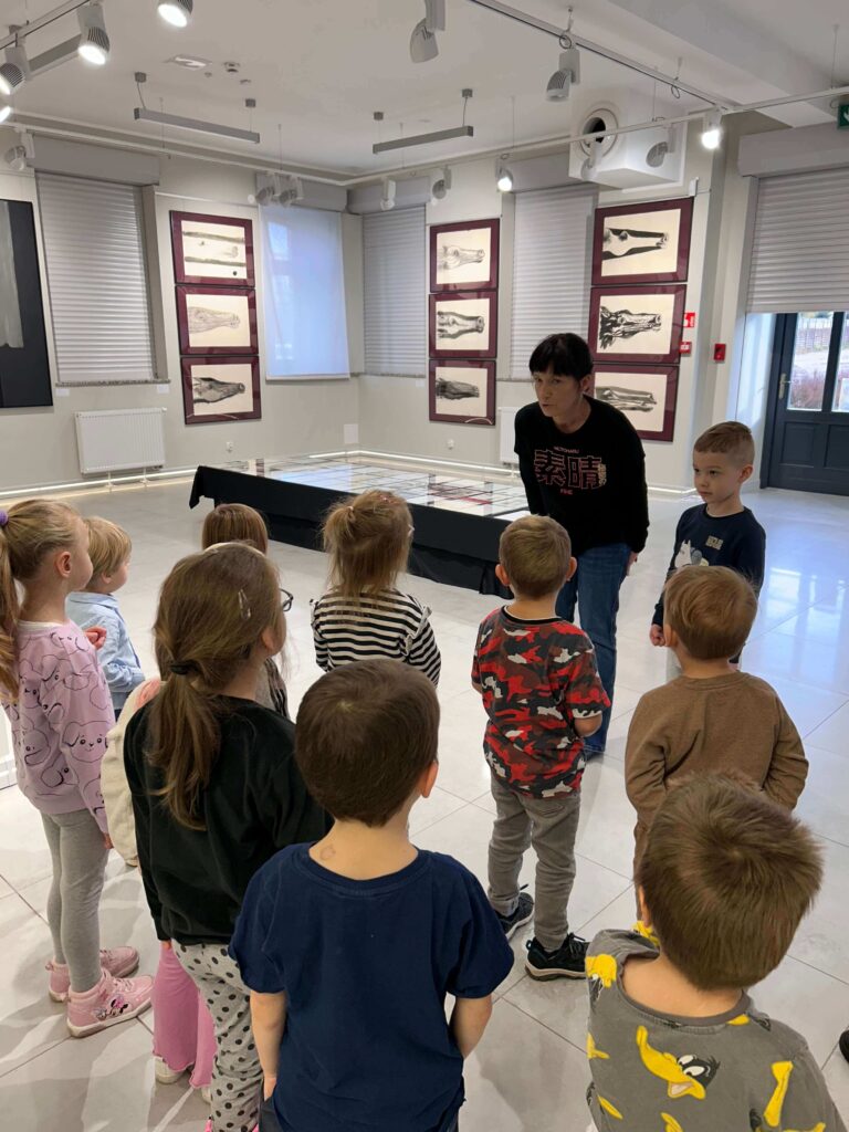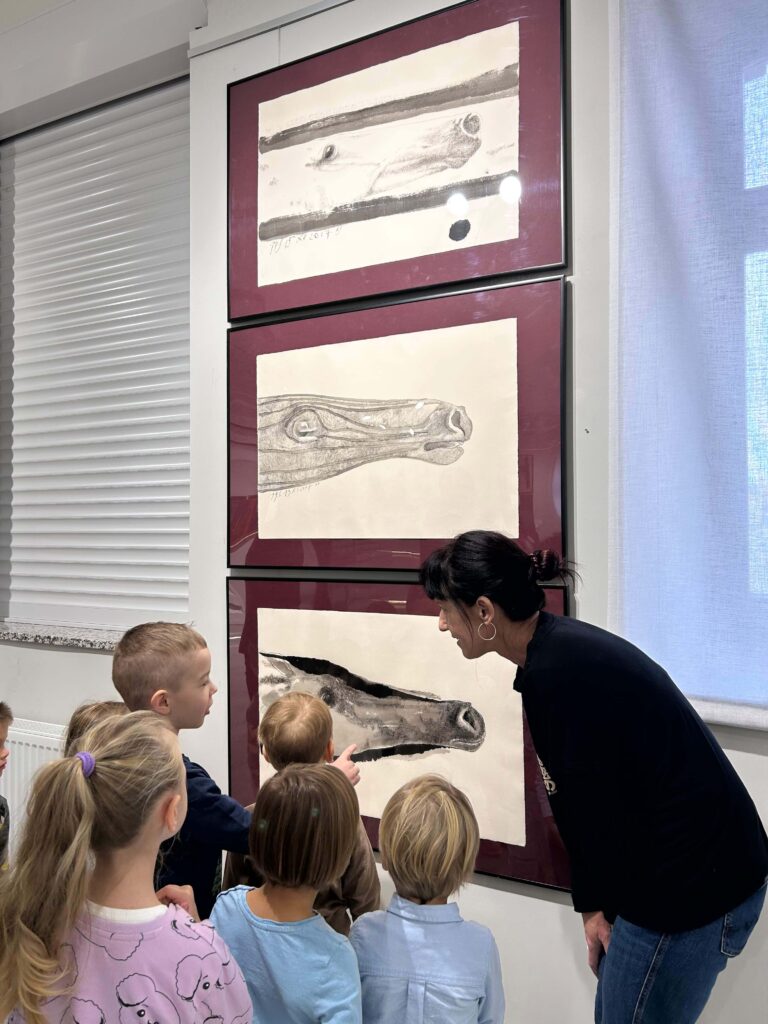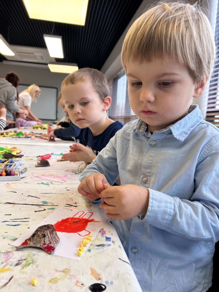 Nasze przedszkolaki wybrały się na pełną wrażeń wycieczkę do Galerii Sztuki „Stara Łaźnia” w Suwałkach. Dzieci z zainteresowaniem oglądały nietypowe obrazy, poznając różne techniki i sposoby wyrażania emocji poprzez sztukę. Wizyta w galerii okazała się doskonałą okazją do rozmowy o kolorach, kształtach i pomysłach artystów. Po zwiedzaniu najmłodsi uczestniczyli w warsztatach plastycznych, podczas których tworzyli własne portrety zwierząt. W ruch poszły pastele, bibuły, krepina, kleje i wyobraźnia! Każda praca była inna, pełna barw i pomysłowości. To był dzień pełen twórczej zabawy, odkrywania i radości, który na długo pozostanie w pamięci naszych małych artystów.