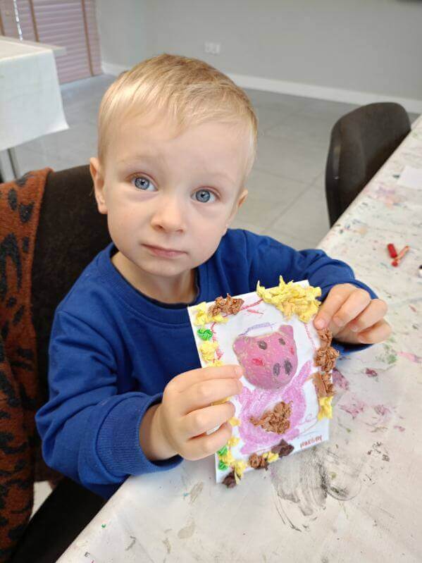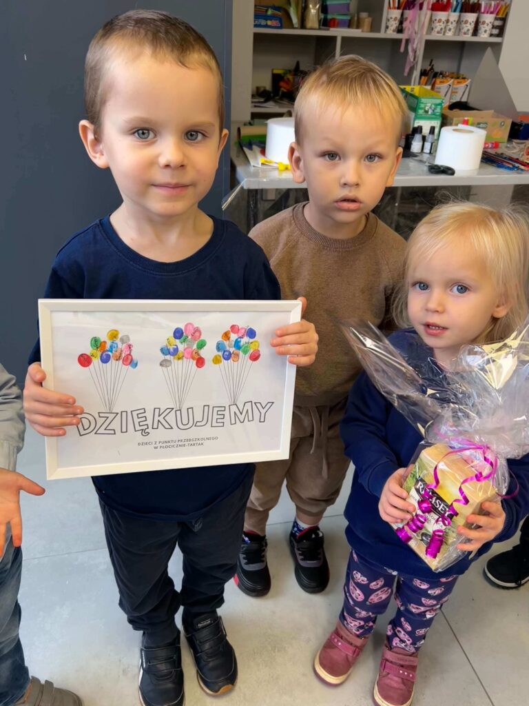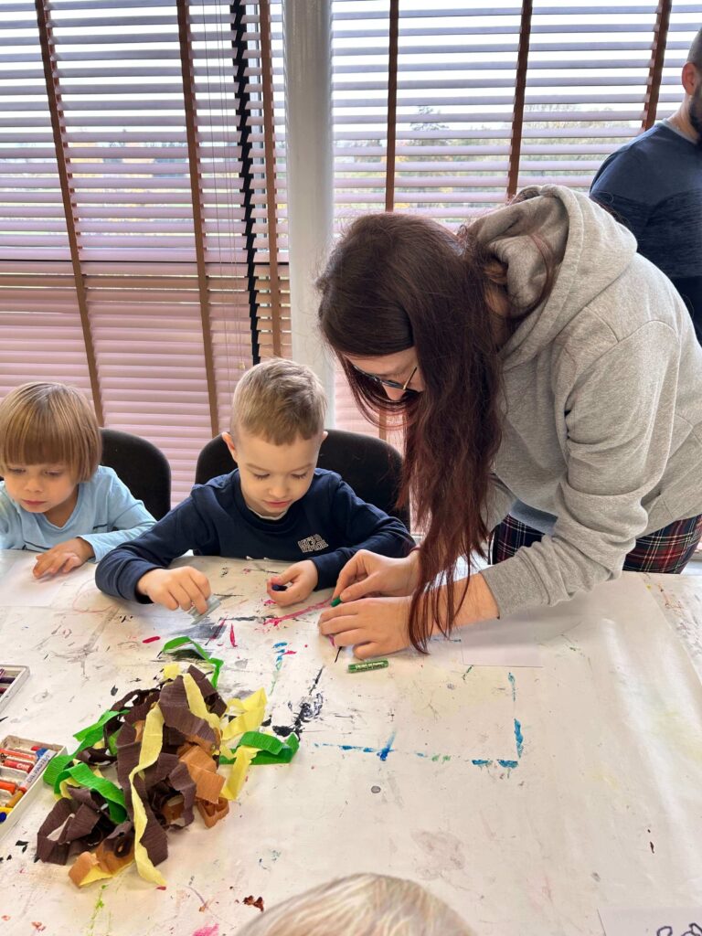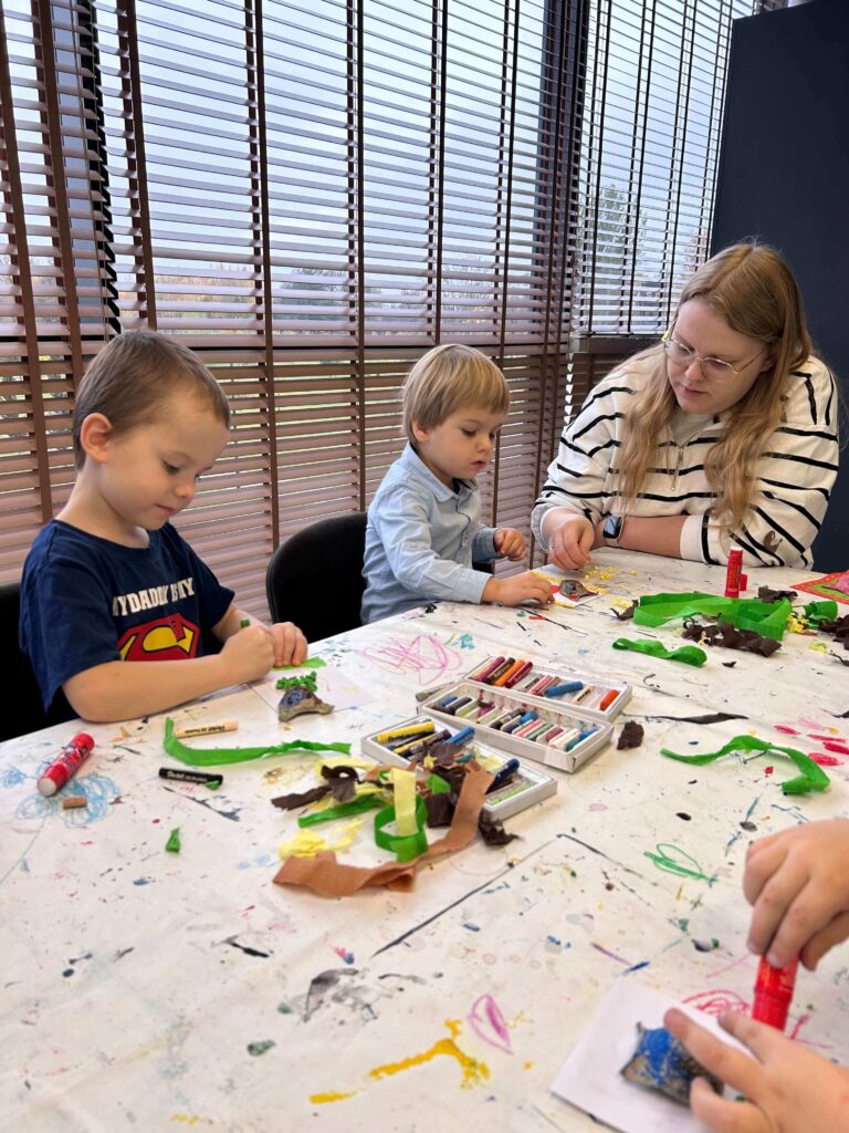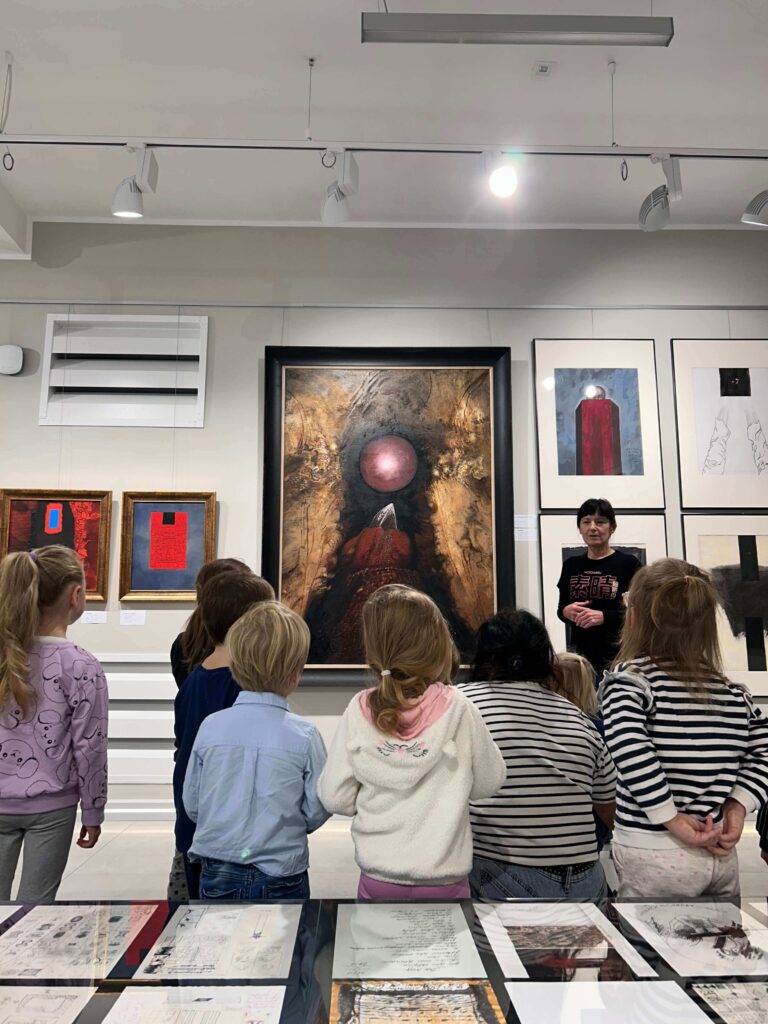 Nasze przedszkolaki wybrały się na pełną wrażeń wycieczkę do Galerii Sztuki „Stara Łaźnia” w Suwałkach. Dzieci z zainteresowaniem oglądały nietypowe obrazy, poznając różne techniki i sposoby wyrażania emocji poprzez sztukę. Wizyta w galerii okazała się doskonałą okazją do rozmowy o kolorach, kształtach i pomysłach artystów. Po zwiedzaniu najmłodsi uczestniczyli w warsztatach plastycznych, podczas których tworzyli własne portrety zwierząt. W ruch poszły pastele, bibuły, krepina, kleje i wyobraźnia! Każda praca była inna, pełna barw i pomysłowości. To był dzień pełen twórczej zabawy, odkrywania i radości, który na długo pozostanie w pamięci naszych małych artystów.
