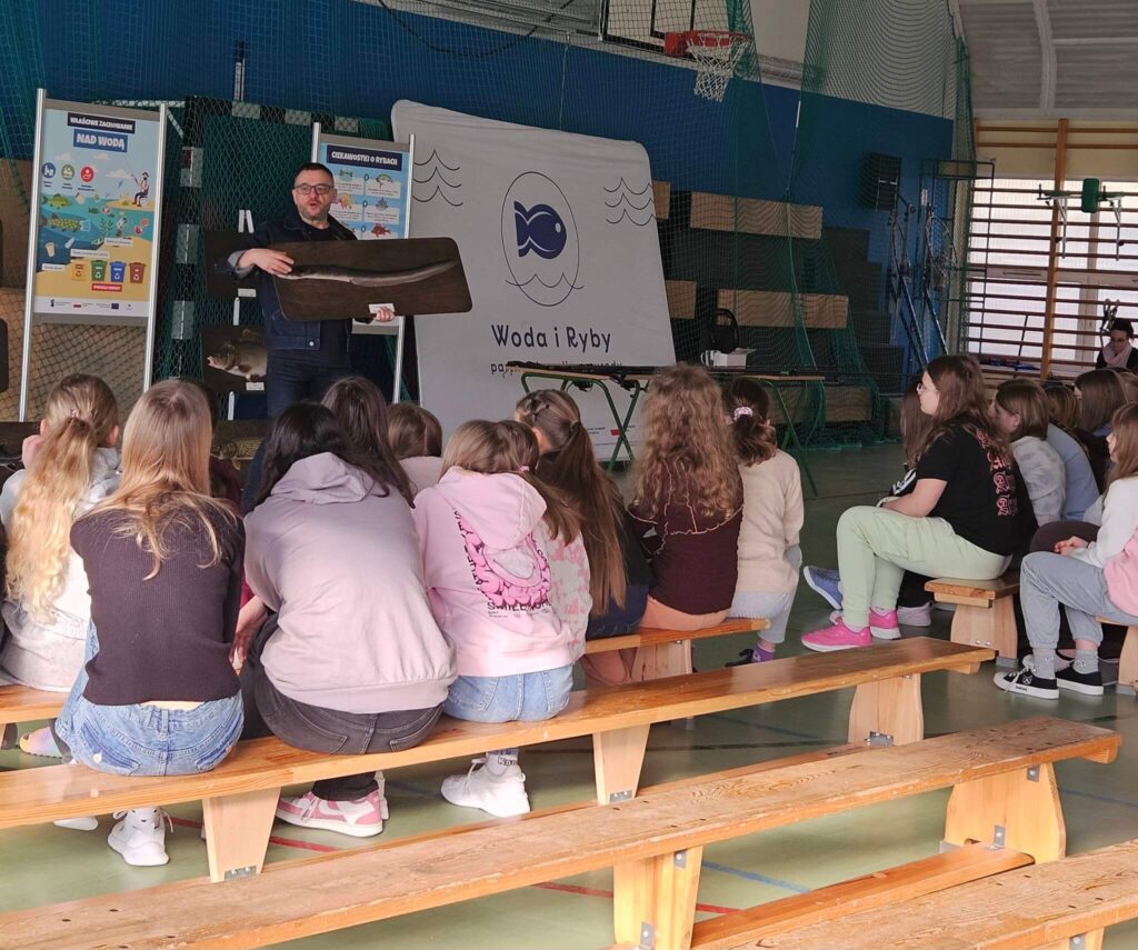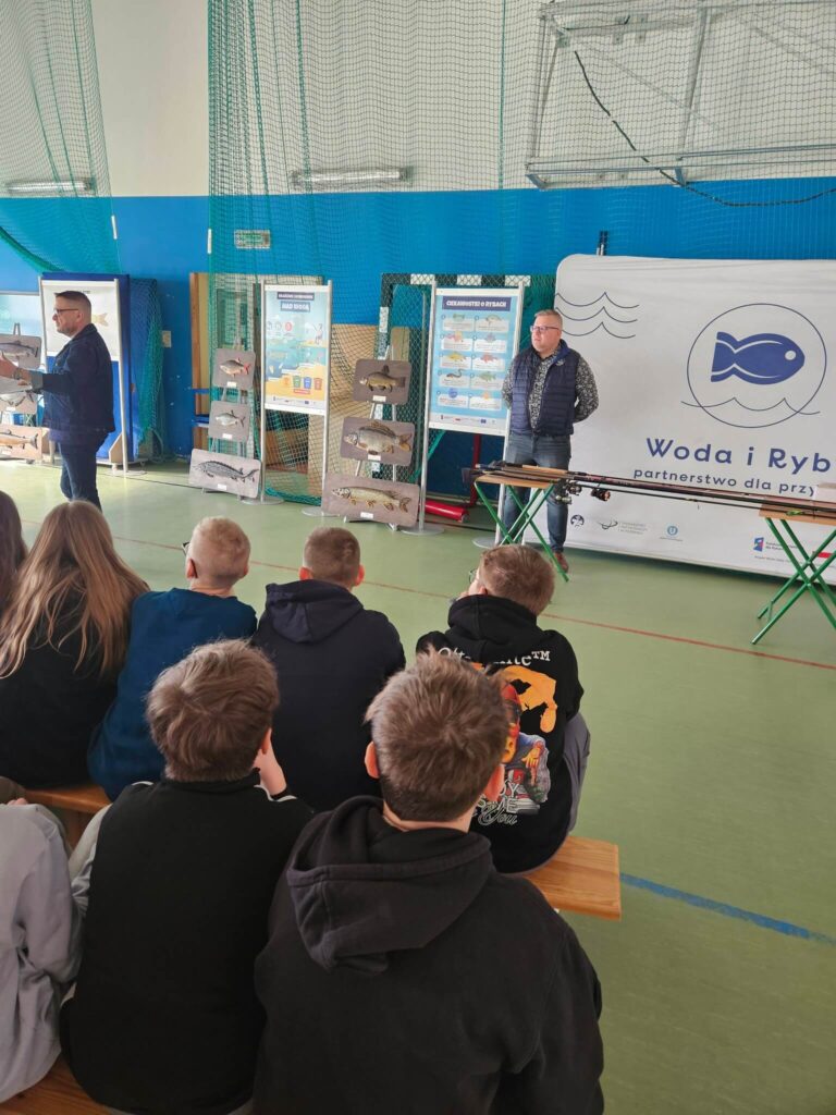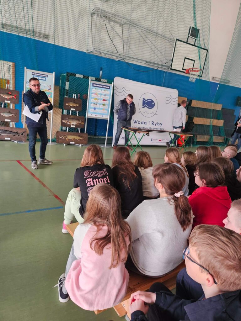 16 marca 2026 roku uczniowie klasy IV ,V i VI mieli okazję uczestniczyć w wyjątkowych zajęciach edukacyjnych realizowanych w ramach ogólnopolskiego projektu „Woda i Ryby”. Program ten jest realizowany przez Polski Związek Wędkarski i współfinansowany ze środków Funduszy Europejskich dla Rybactwa 2021–2027.Projekt „Woda i Ryby” to inicjatywa edukacyjna, której głównym celem jest budowanie świadomości ekologicznej wśród dzieci i młodzieży oraz kształtowanie odpowiedzialnych postaw wobec środowiska naturalnego, szczególnie ekosystemów wodnych. Dzięki mobilnej formule zajęć edukatorzy docierają bezpośrednio do szkół, gdzie poprzez atrakcyjne formy przekazu – prezentacje, quizy, konkursy oraz działania praktyczne – przybliżają młodym uczestnikom świat ryb, rzek i jezior.Jednym z kluczowych elementów programu jest ścieżka dydaktyczna „Ryby i ich dom”, która pozwala uczniom poznać różnorodność gatunków ryb występujących w polskich wodach, zrozumieć funkcjonowanie ekosystemów wodnych oraz dowiedzieć się, jak każdy z nas może przyczynić się do ich ochrony.