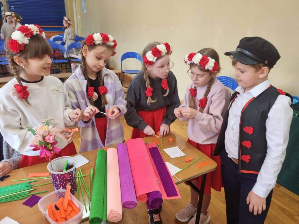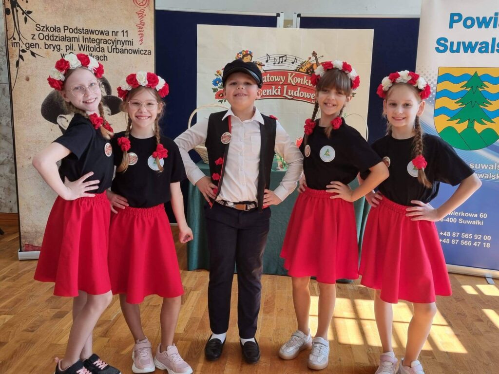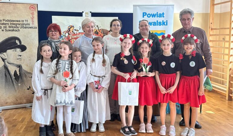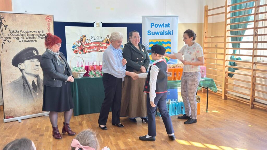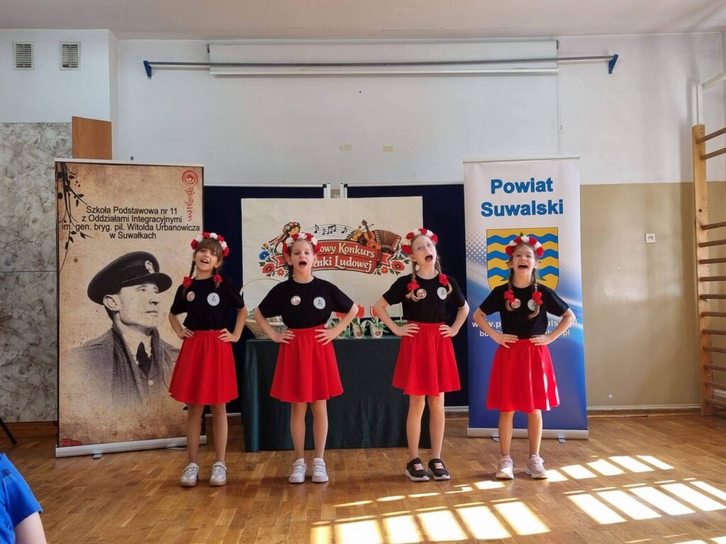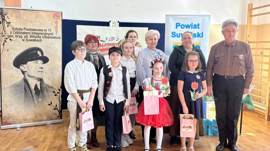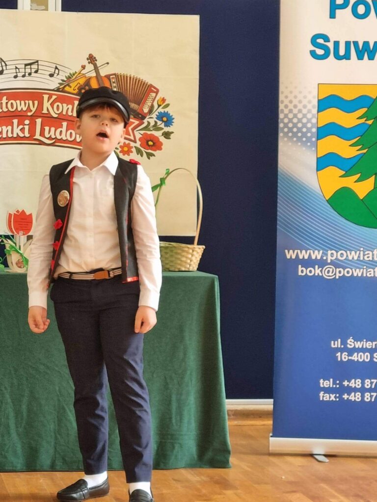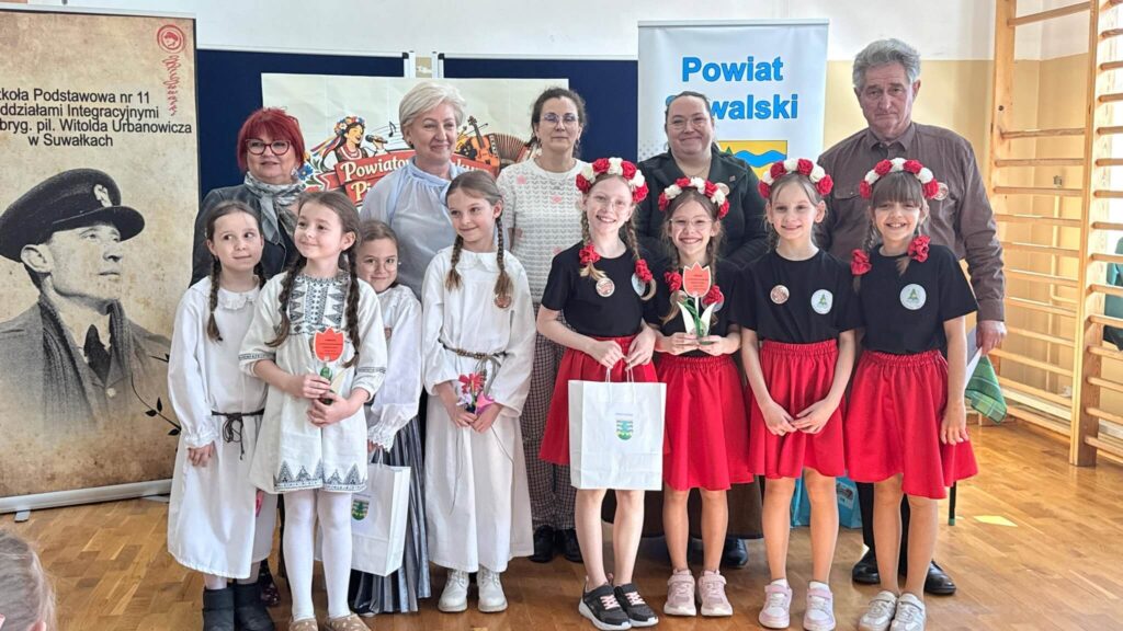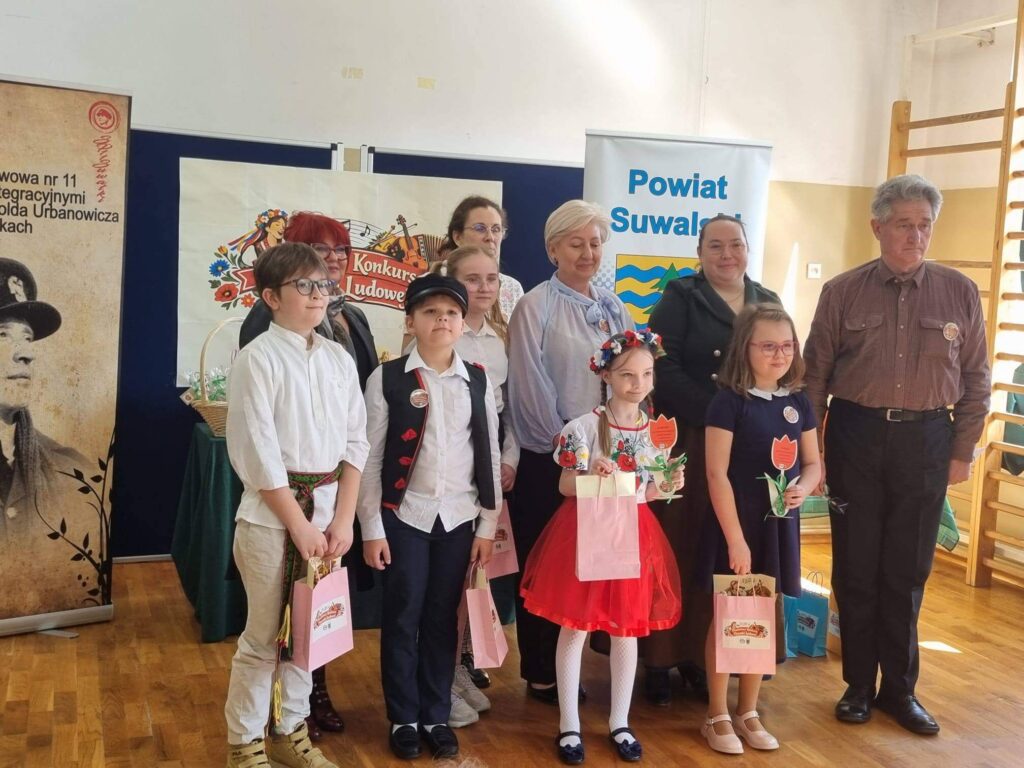 Uczniowie klasy III wzięli udział w XI Powiatowym Konkursie Piosenki Ludowej, zorganizowanym przez Szkołę Podstawową nr 11 z Oddziałami Integracyjnymi im. gen. bryg. pil. Witolda Urbanowicza w Suwałkach. Wydarzenie to miało na celu rozwijanie zainteresowań kulturą ludową oraz kształtowanie postaw patriotycznych wśród najmłodszych. Nasz zespół w składzie: Antonina Choroszko, Urszula Lenczewska, Amelia Zaborowska, Patrycja Żynda wyśpiewał I miejsce w kategorii zespołów wokalnych (klasy 1–3)! Dodatkowo Oskar Pasiak został wyróżniony w kategorii solistów, co jest dla nas ogromnym powodem do dumy. Serdecznie gratulujemy wszystkim uczestnikom – Wasz talent, zaangażowanie i piękne pielęgnowanie tradycji ludowej zasługują na najwyższe uznanie!