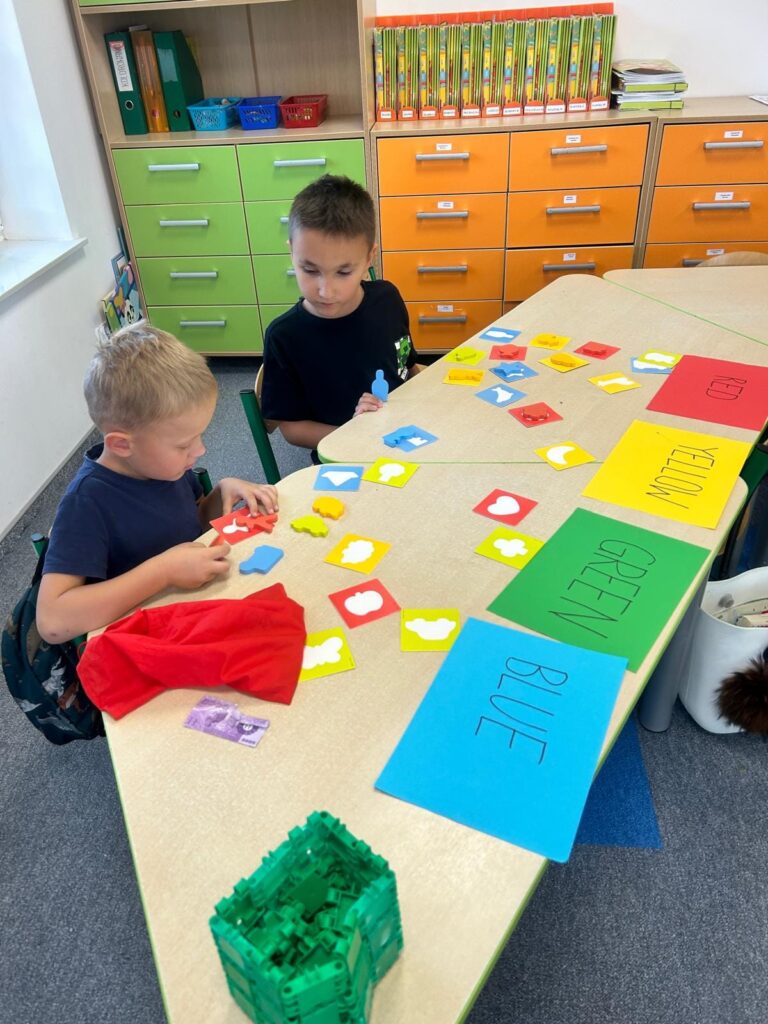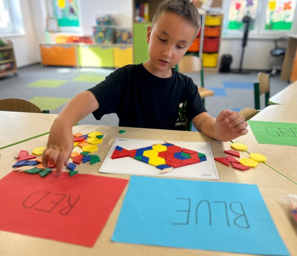 Jak się nie nudzić na zajęciach logopedycznych? Wystarczy, że dobrze bawi się uczeń i nauczyciel. Dziś podczas artykulacji samogłosek dzieci ćwiczyły język angielski! Różnorodne układanki i piasek kinetyczny sprawiły najmłodszym dużo radości.
